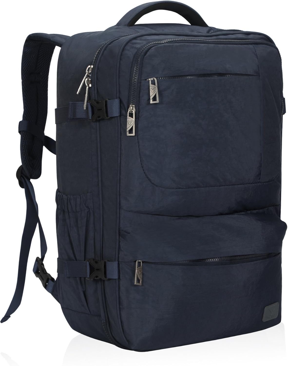 Hynes Eagle 44L Carry on Backpack Airline Approved Travel Backpack for Men Women Large Laptop Backpack 17 inch Nylon Backpack Overnight Weekender Bag Navy Blue