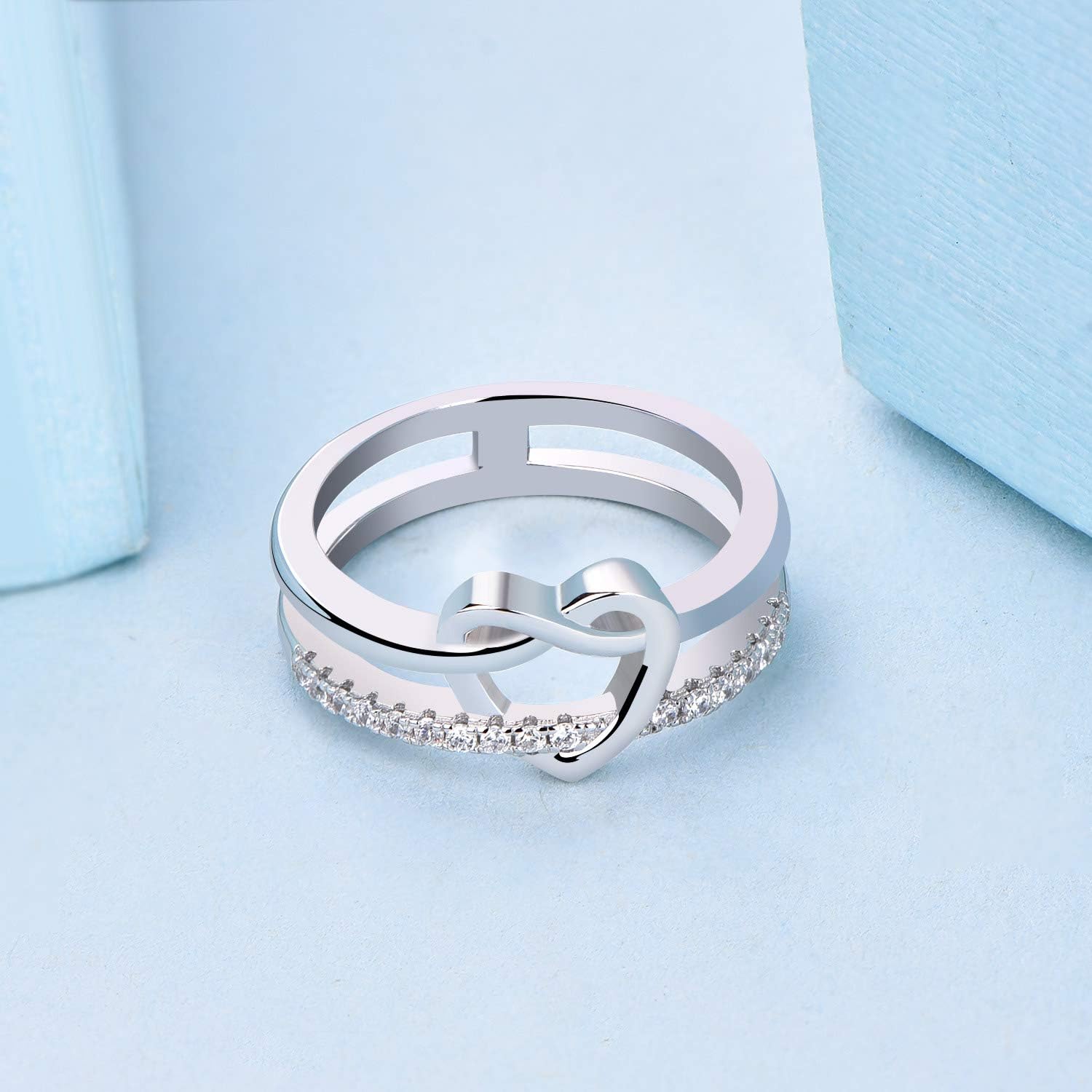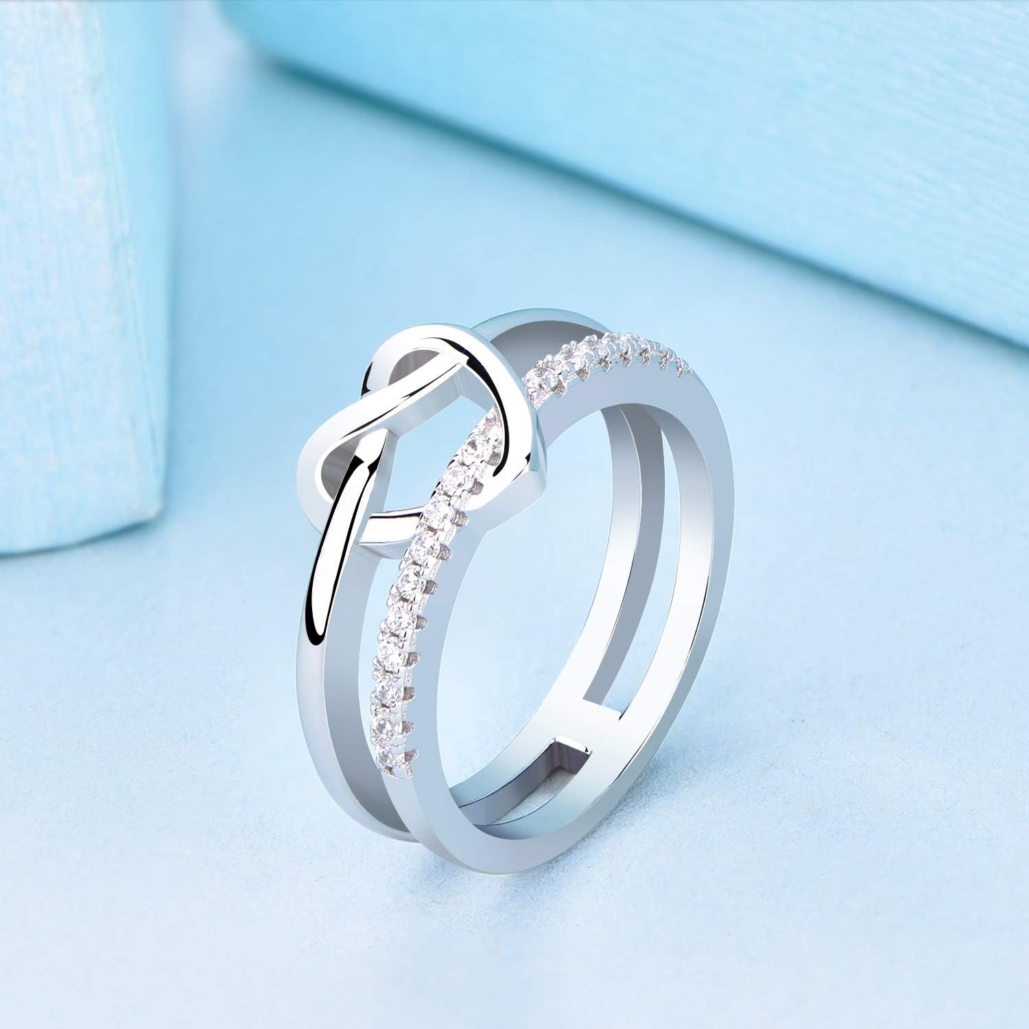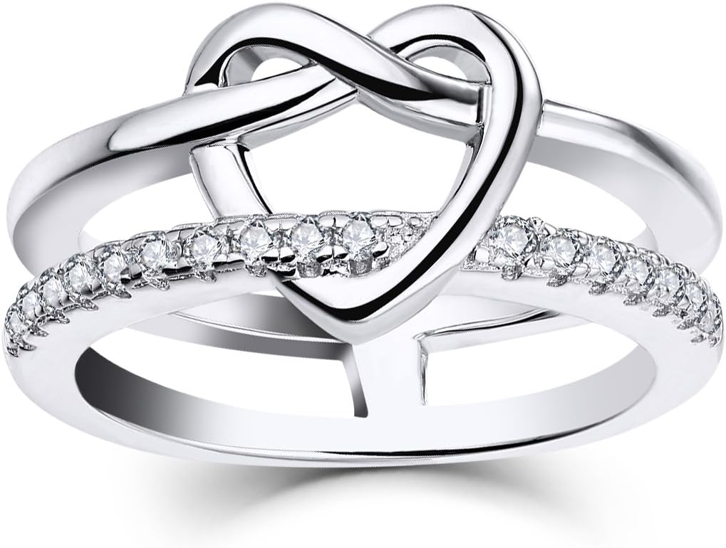 JO WISDOM 925 Sterling Silver Infinity Love Knot Heart Promise Ring for Her