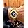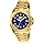 Caja de acero inoxidable de tono dorado de 40mm de diámetro x 14mm de grosor; Cristal de fondo de exhibición; Esfera azul; Ventana de fecha ampliada; Manecillas y marcadores de horas luminosos