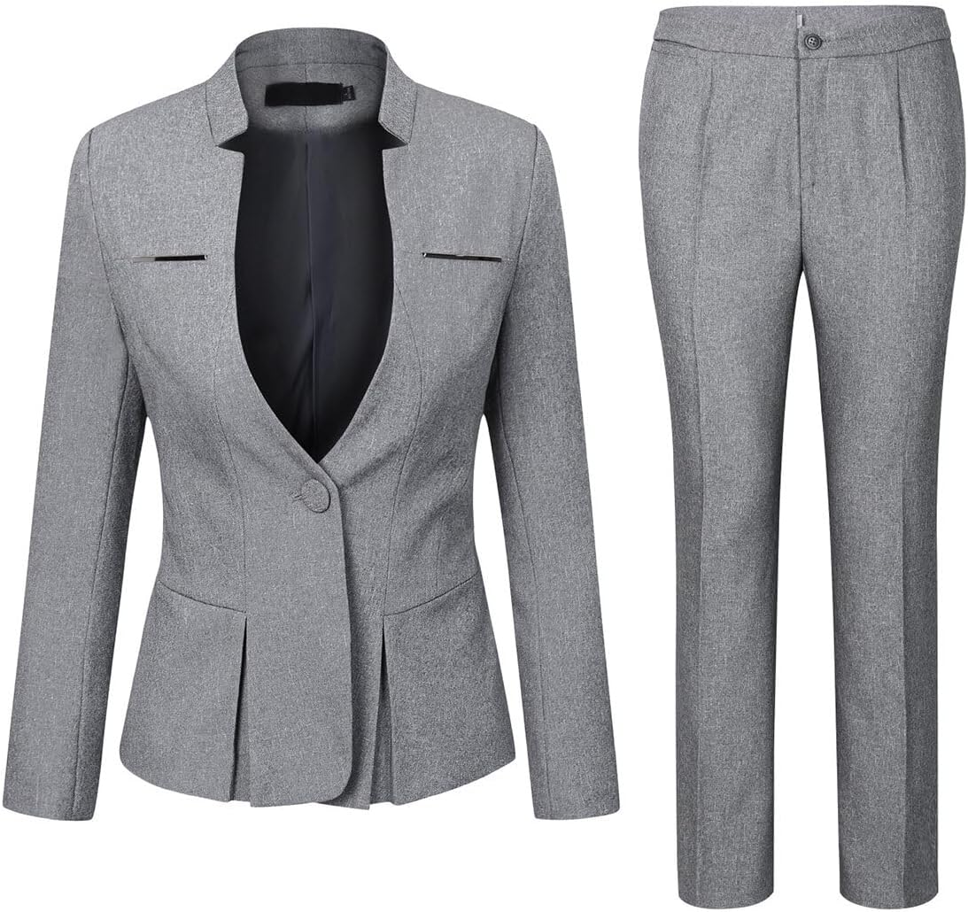YUNCLOS Women's Elegant Business Two Piece Office Lady Suit Set Work Blazer Pant (Suit Set-Light Grey, M)