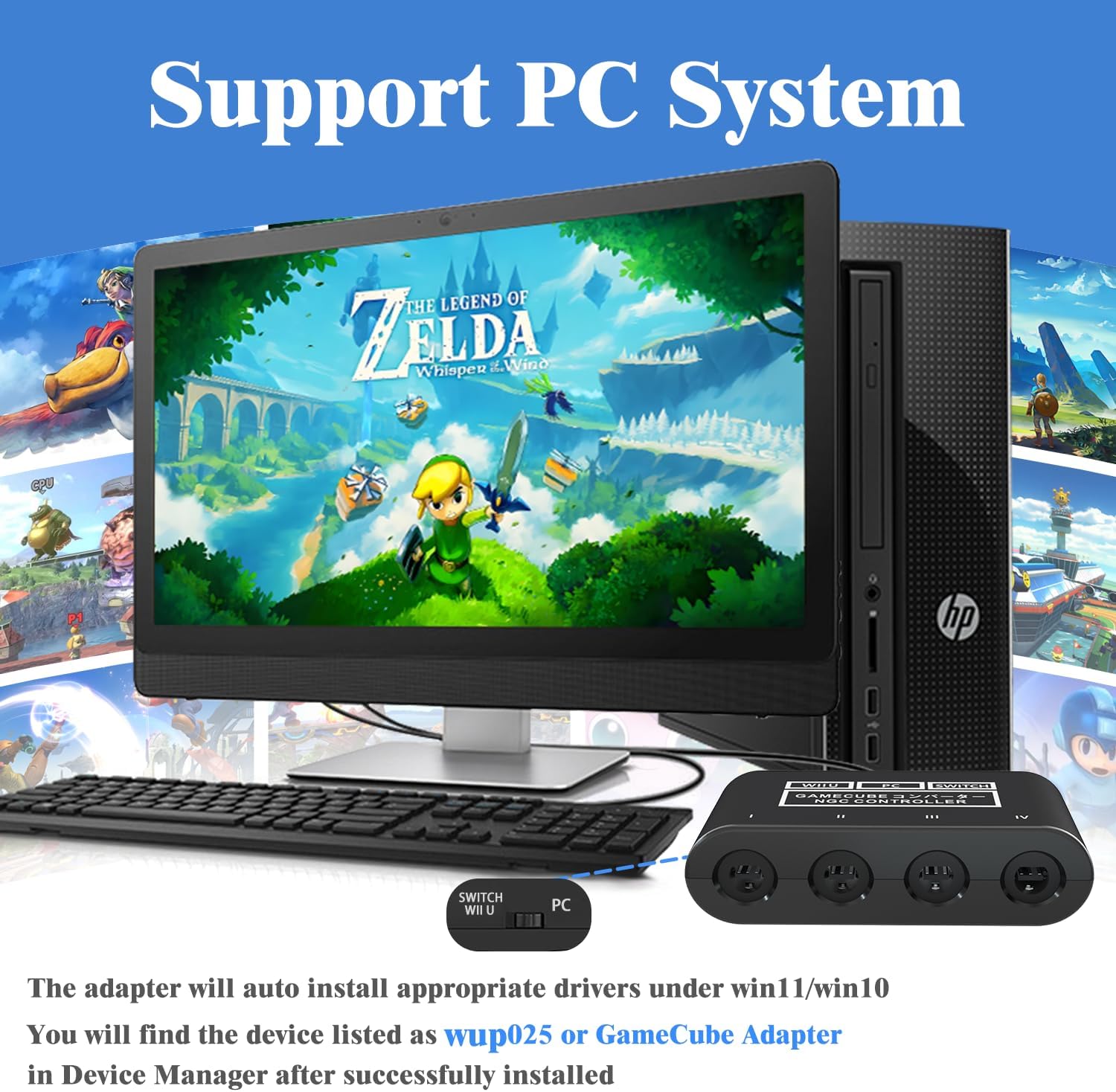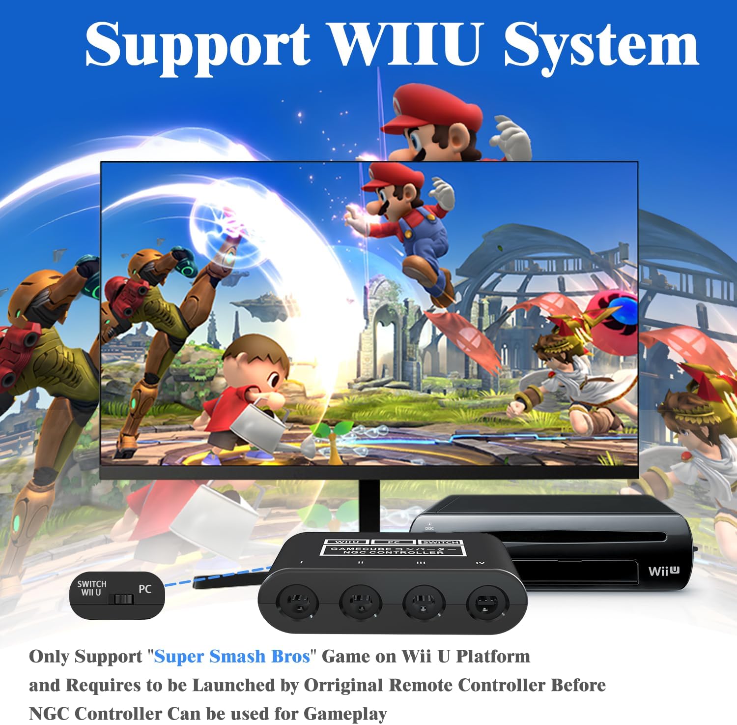 Adaptador de Gamecube 3 en 1 - Compatible con Nintendo Switch / Wii U / PC USB y Windows, funciona con controlador de Nintendo Gamecube, hasta ocho jugadores para Wii U o Switch (se necesitan dos adaptadores). Ideal adaptador de controlador de Gamecube para jugar Super Smash Bros.