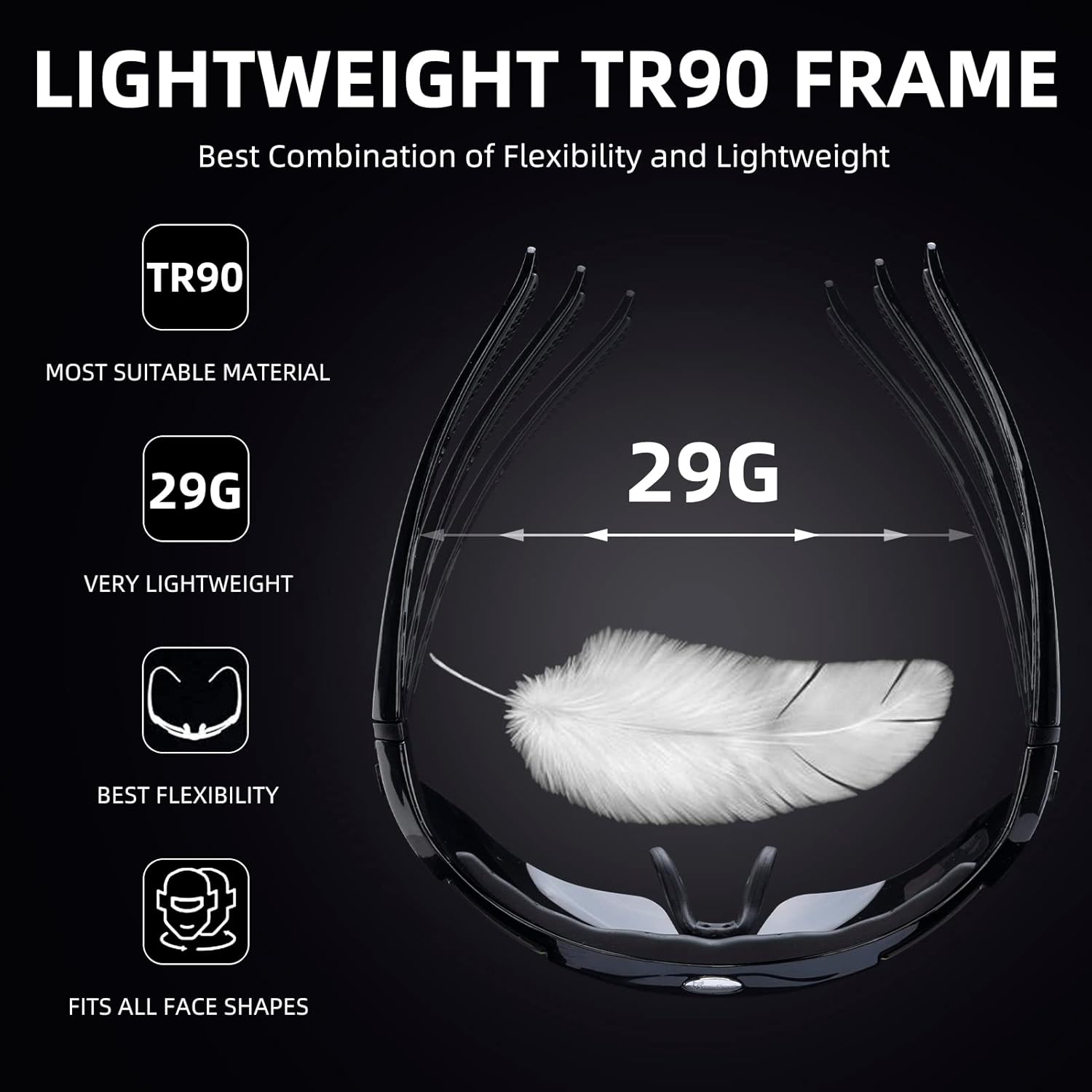 LIGERO: Solo 29g/par, ideal para usar durante largos periodos de tiempo. Las gafas de ciclismo ultraligeras reducen la presión en la nariz y las sienes