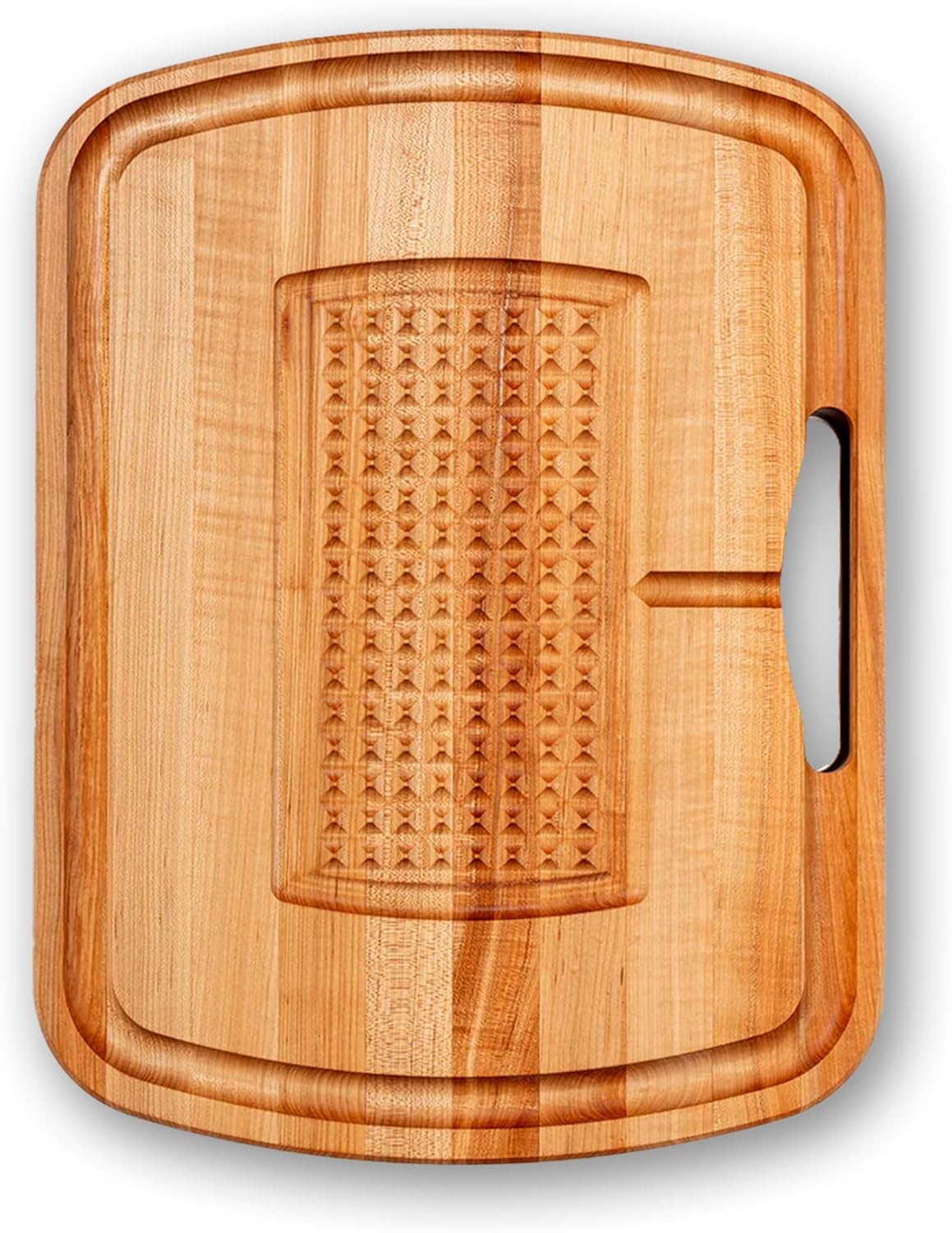 Crafted for Your Home: This wooden board is expertly crafted with reversible sides, recessed finger grips, a sloped juice groove with drip tray on one side, a pyramid design to stabilize food, and an oil finish.