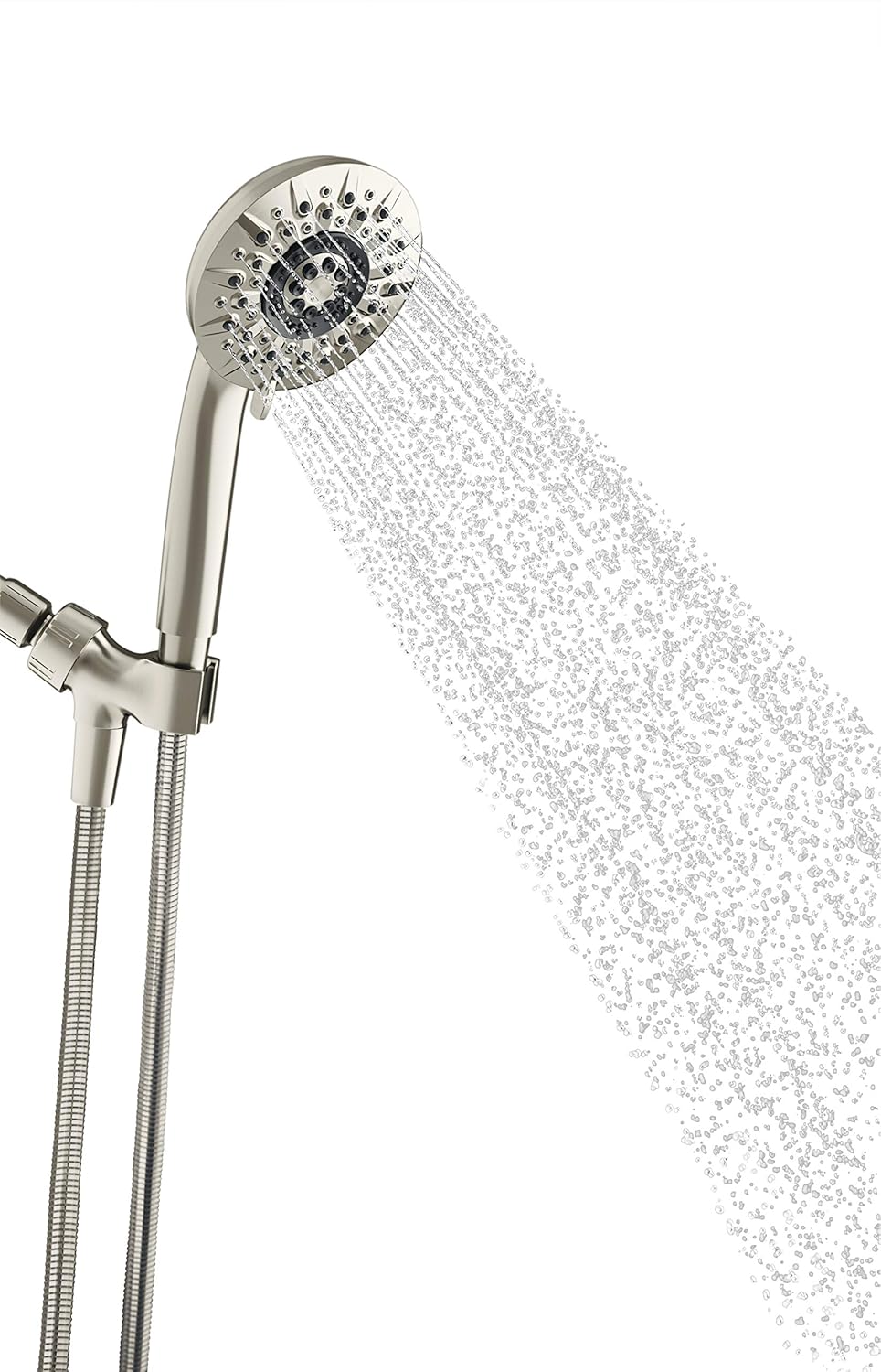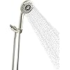 With 5 functions, this Five-Spray Multifunction Handshower is designed to provide you with a relaxing and invigorating shower experience. The single finger control allows for easy operation, while the DIY friendly installation allows you to install the showerhead without the use of tools. Each Handshower features a lasting finish that helps protect against corrosion and wear. Lasting finish resists corrosion and wear Pulsating massage spray targets sore, achy muscles Includes handshower, 60 in. hose and handshower cradle Intense rinse spray provides gentle, yet thorough, rinsing Full coverage spray features angled nozzles to provide warm, wide coverage MasterClean technology makes spray face and nozzles easy to clean Number of Spray Patterns: 5 Mounting Type: Wall Mount Style: Coastal,Farmhouse,Transitional Included Components: Hand Shower Features: No Additional Features Spray Pattern: Full,Massage,Rain,Vigorous,Wide Shower Head Size: Medium Color/Finish: Vibrant Brushed Nickel Flow rate (gallons per minute): 1.75 Color Family: Brushed Nickel Shower Head Shape: Round Manufacturer Warranty: Lifetime Limited Warranty Certifications and Listings: CSA Certified Showerhead face diameter (in.): 4.654 Approximate Hose Length (ft.): 5 (ft.) Hose length (in.): 60 Hand Shower Handle Length (in.): 6.5 Connection size (in.): 1/2 In.