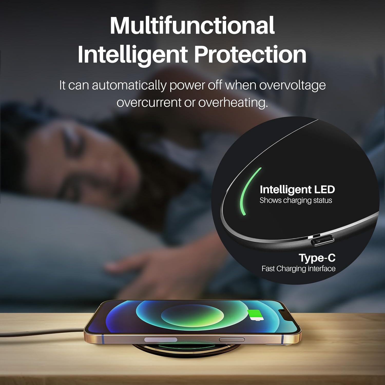 【Luces indicadoras LED】Luces LED que cambian de color para respirar. Es bonito y te permite saber cuándo está listo para cargarse, cargarse y cuándo el dispositivo está completamente cargado.