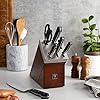 SET INCLUDES: 4-inch paring/utility, 5-inch serrated utility, 5.5-inch prep, 7-inch hollow edge santoku, 8-inch chef’s knife, kitchen shears, and 6-slot self-sharpening knife block.