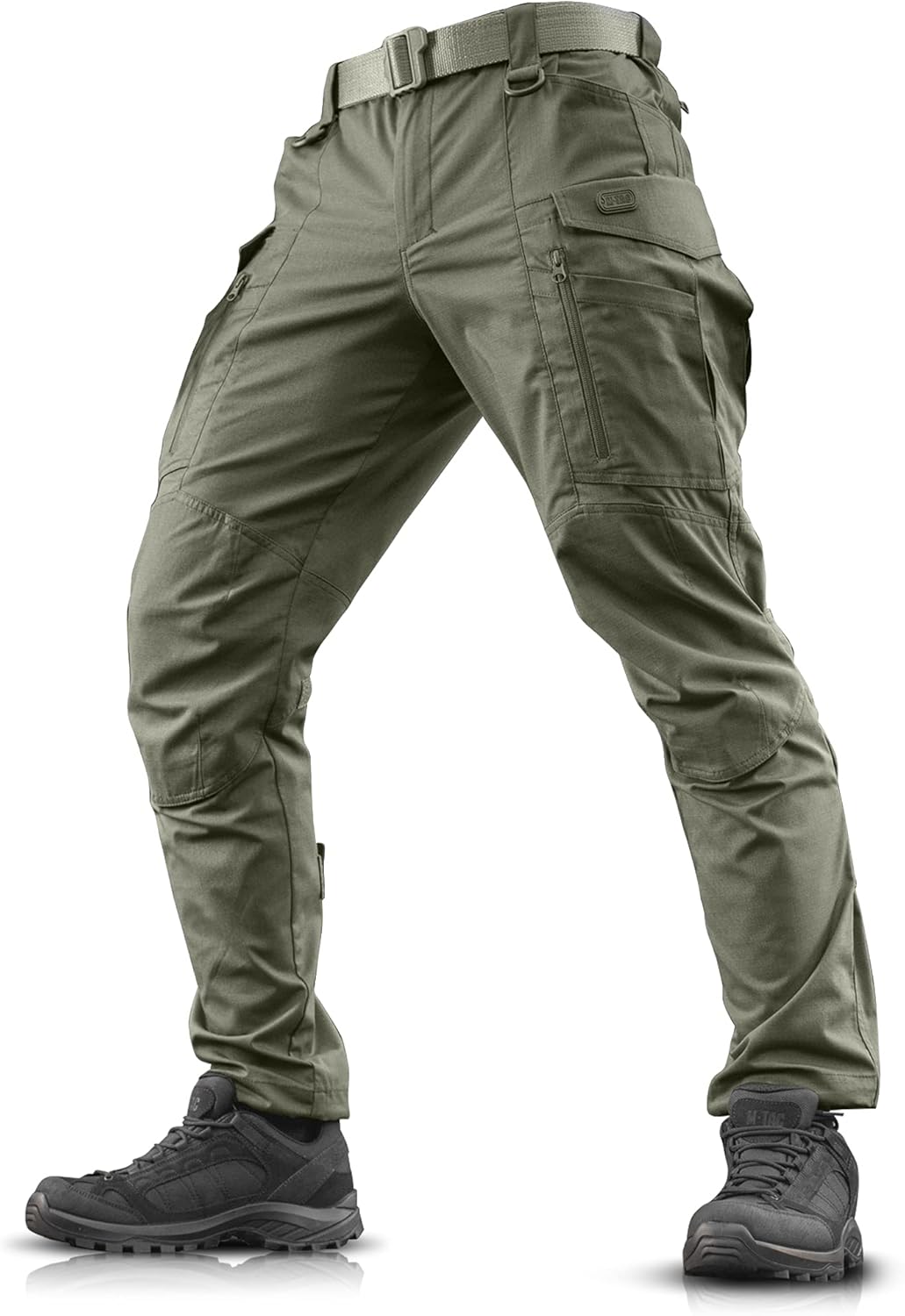 These lightweight tactical pants men offer a casual, relaxed appearance while pulling double duty as rugged military style combat pants for men. The military style pants for men tactical are flexible enough to move and come outfitted with many pockets.In addition to their military style applications, these work cargo pants men are invaluable. The army pants for men cargo are also adjustable work pants for men with knee pad and flexible material for maximum ease. They even make good construction pants for men.The pants tactical also function as outdoor hiking pants men due to the durable material and water repellent treatment. As one piece, the tactical hiking pants for men also offer superior durability to many zip off options.These tactical pants offer an elastic waistband and adjustments at the base of the legs. The wearer can quickly transition from loose to slim fit or add knee pads. With the amazing double duty options for this apparel, wearers will never run out of situations to wear them.These flex fit tactical pants are available in black, gray, dark navy blue, coyote brown, dark olive, and army olive.Estos pantalones de trabajo para hombre son muy flexibles y vienen con muchos bolsillos.
