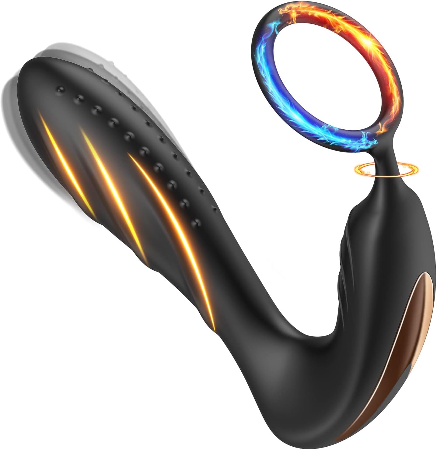 Vibrating Prostate Massager with Cock Ring,10 Patterns Anal Plug with Remote Control, G-spot Vibrator Sex Toys for Men, Women and Couple