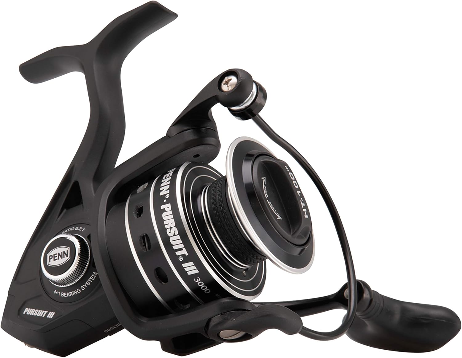 The PENN Pursuit III features a durable construction and the smooth gear system anglers expect from PENN. This reel features an ultra lightweight, corrosion-resistant graphite body and powerful HT-100 drag system making the Pursuit III a great value for the money for saltwater anglers. Available in six sizes from 2500 to 8000, the Pursuit III has a reel for most fisheries. The Instant Anti-Reverse eliminates even the slightest rotor back play for instant hook-ups every time, while the 4 shielded stainless steel ball bearings provide smooth retrieves.Features: Full Metal Body and sideplate CNC Gear technology HT-100 carbon fiber drag washers 5+1 sealed stainless steel ball bearing system Line Capacity Rings Superline Spool