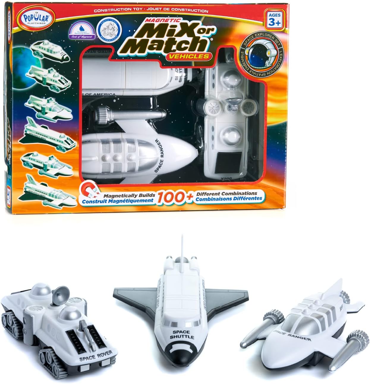 POPULAR PLAYTHINGS Magnetic Mix or Match Vehicles, Space, White, Standard