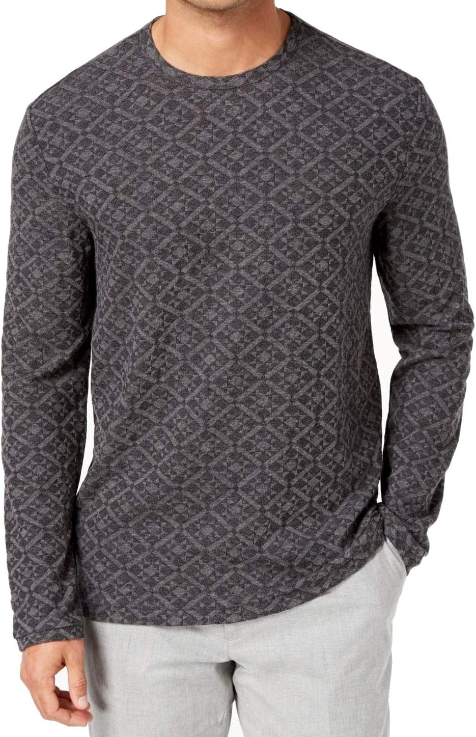 Tasso Elba Mens Medallion Knit Pullover Sweater Gray L