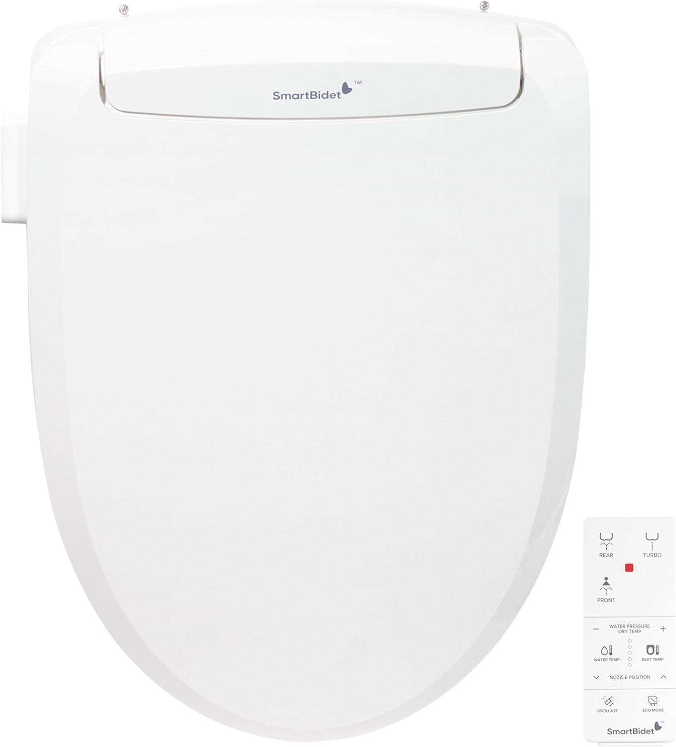 Our NEW and IMPROVED model, SB-100R SmartBidet Electric Bidet for Elongated Toilets with Remote Control offers newly designed and upgraded functionality to ensure hygiene, comfort and convenience for all users. Some of its new features are its slim design, stainless steel nozzle with a replaceable nozzle cap, child wash button, and an increase in Extensive features include posterior wash, feminine wash, turbo wash, oscillating wash, adjustable water pressure, hygienic filtered water, heated water and seat, quick-release seat for easy cleaning, self-cleaning nozzle and more. Seat Hole Dimensions - 7.9 x 11.5 inches. Seat Thickness - 1.3 inches