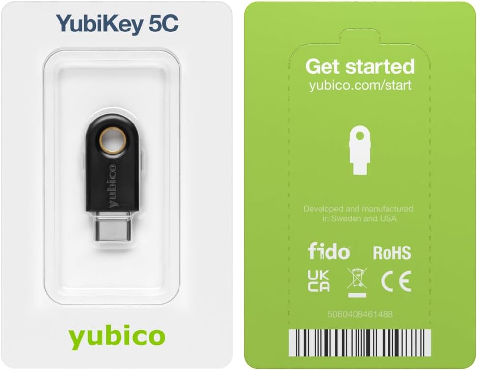 Yubico YubiKey 5C - Clave de seguridad USB de autenticación de dos factores, compatible con puertos USB-C - Proteja sus cuentas en línea con algo más que una contraseña, certificado FIDO