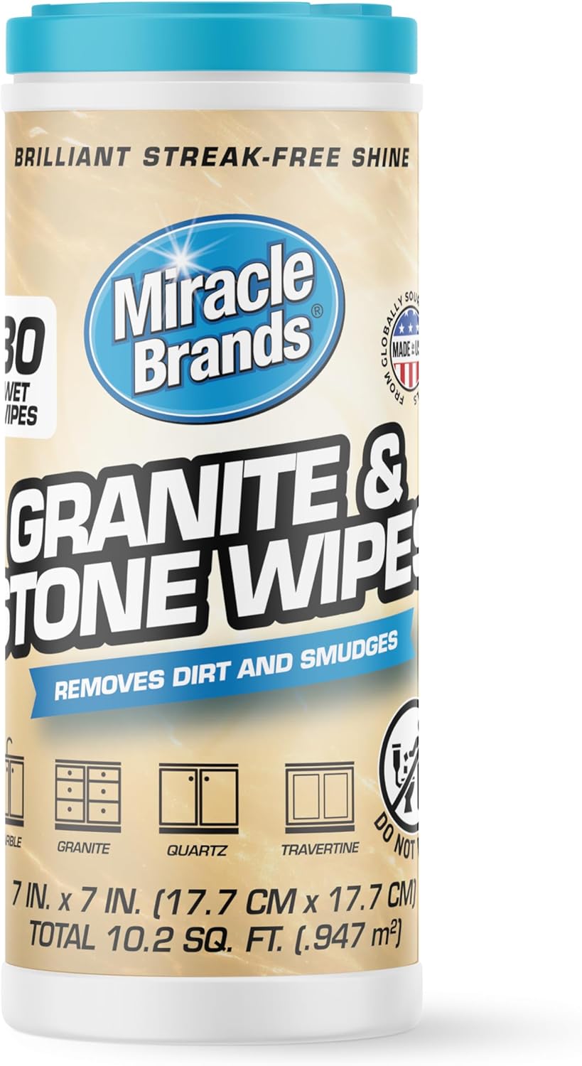 MiracleWipes for Granite & Stone, Clean, Protect, Polish Stone, Marble, Quartz, Slate, Tile, Laminate Surfaces in Kitchen and Bathroom - 30 Count