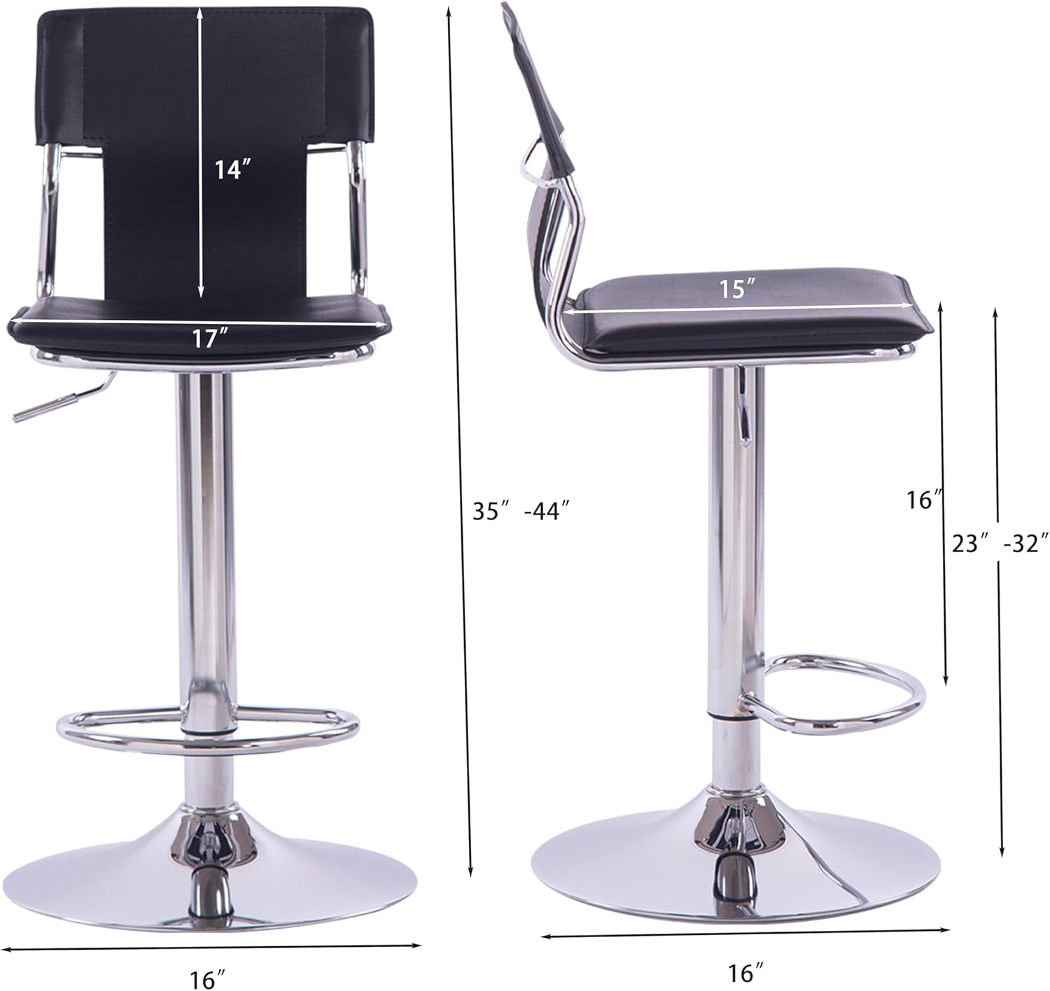 Nuestro juego de 2 sillas de barra y taburetes de mostrador cuenta con un rango de altura de 23"-32", perfecto para alturas de mostrador de 33"-46". Las sillas giratorias de 360° y los taburetes de barra de altura ajustable los hacen ideales para islas de cocina, comedores o bares en casa.