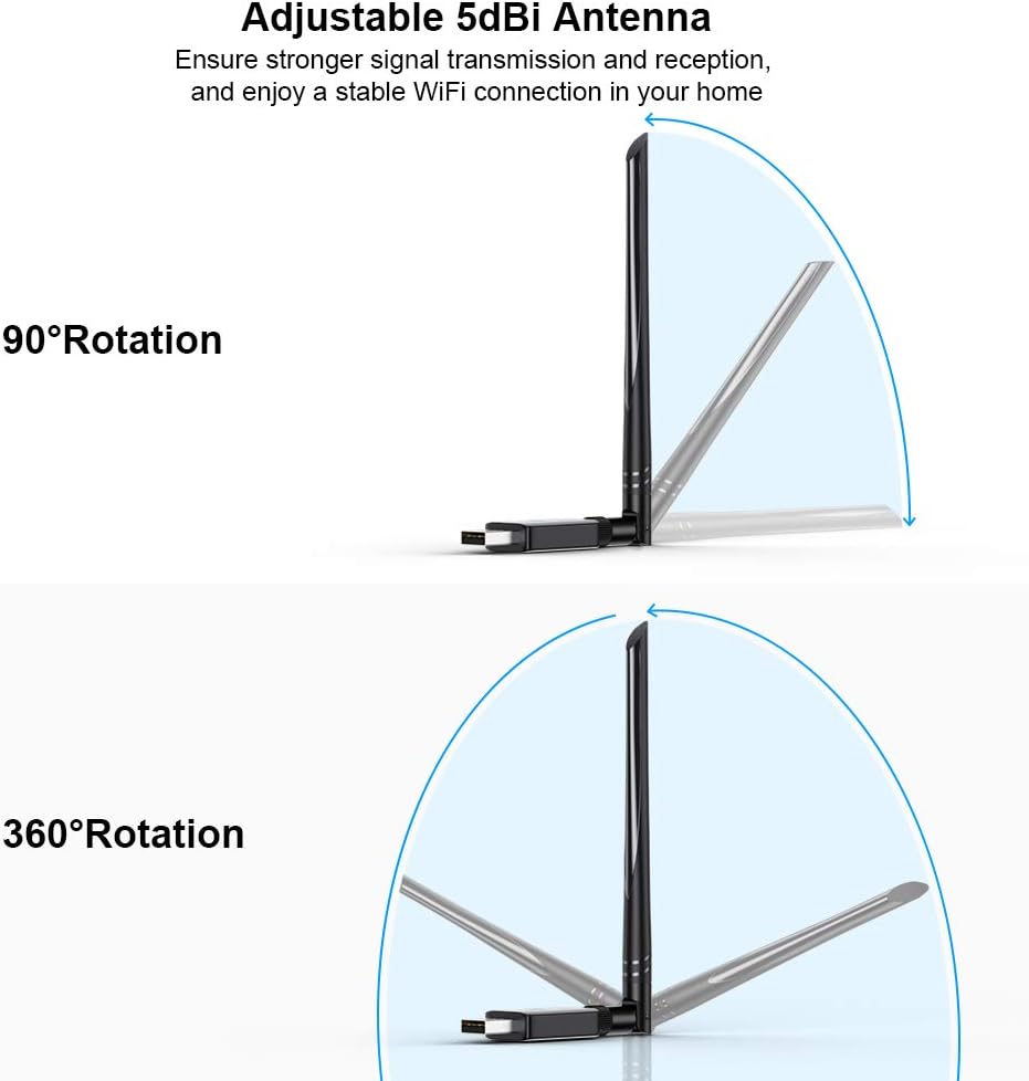 High Speed: Yo don't have to put up with slow internet speeds at home. 802.11AC WiFi dongle, with 5.0GHz(450Mbps) and 2.4GHz(150Mbps) bands, the WiFi speed can be up to 600Mbps. It's ideal for gaming online and seamless HD video streaming.