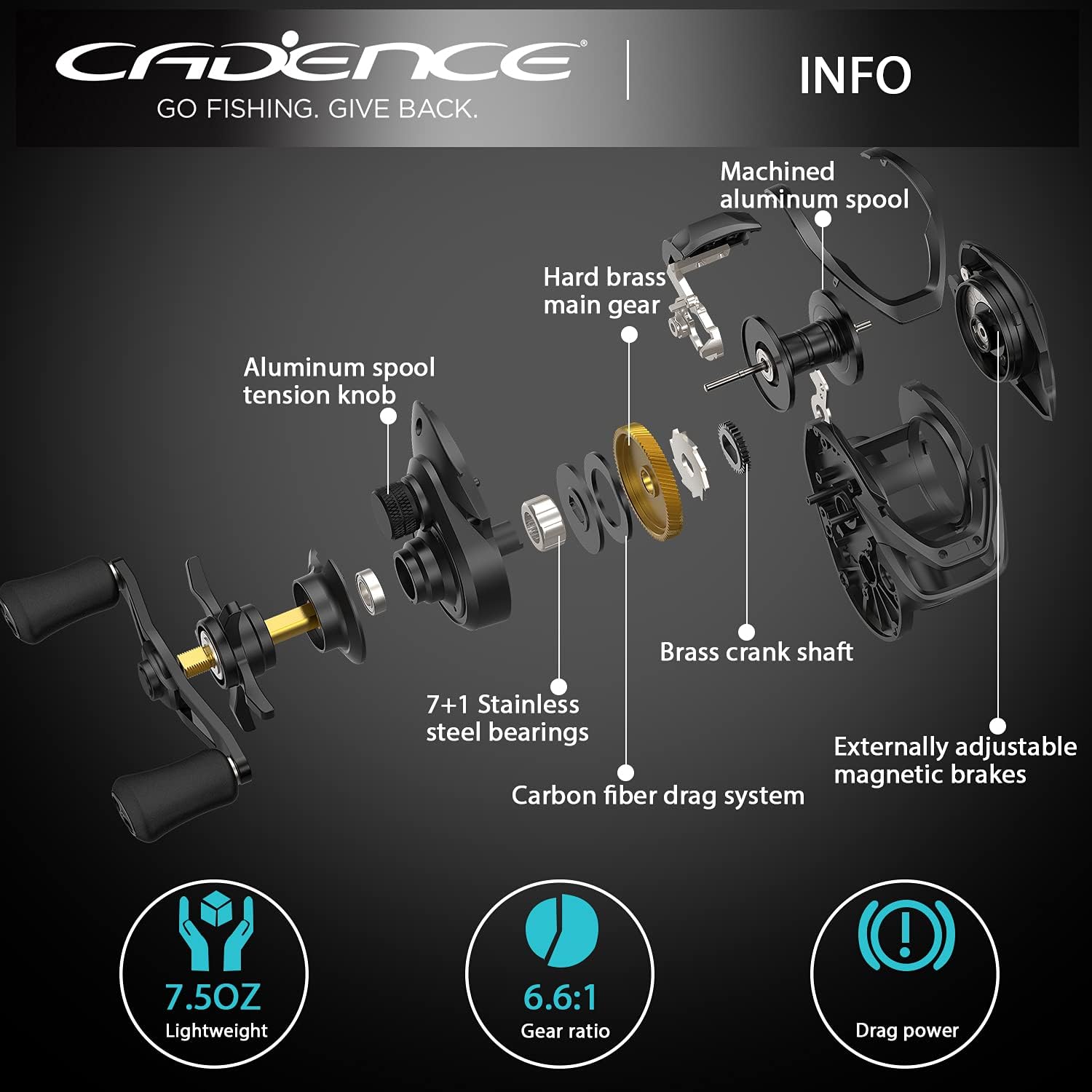 Cómodo diseño compacto con forma de palma: los carretes de fundición CB5 cuentan con un marco ligero de grafito y placas laterales. Las líneas de transmisión lisas de diseño ergonómico reducen en gran medida la fricción. El elegante lanzador de cebo con diseño rojo/negro de perfil bajo con sistema supersuave de recuperación de la línea a alta velocidad ofrece el máximo rendimiento de pesca. Material duradero de primera calidad: los carretes de fundición CB5 están compuestos por una bobina de aluminio de primera clase aeronáutica y una perilla tensora de bobina. Además, con un diseño de piñón y engranaje principal de latón duro, este carrete reduce la fatiga de la fundición y mejora en gran medida la resistencia a la corrosión y la durabilidad. Rodamientos ultralisos: el carrete de cebo CB5 está compuesto por 7 rodamientos de bolas de acero inoxidable con doble blindaje y 1 rodamiento antirretroceso instantáneo, lo que puede reducir el esfuerzo de lanzamiento y garantizar que sea suave y silencioso incluso bajo cargas pesadas. El Graphite - clicker star drag con recordatorios de sonido tiene un diseño muy humanizado. ¡Esto proporciona moldes largos y precisos! Recuperación rápida y mejor relación calidad-precio: el carrete de cebo CB5 está disponible en una rápida relación de transmisión de 6,6 para recuperaciones más rápidas. El lanzador de cebo con elegante diseño plateado de perfil bajo y sistema supersuave de recuperación de la línea a alta velocidad ofrece el máximo rendimiento de pesca. RENDIMIENTO POR MENOS: los accesorios de pesca Cadence ofrecen funciones de primera calidad de alto rendimiento a un precio inmejorable. Pescar con equipo confiable y de calidad no debería significar arruinarse. Nuestro experimentado equipo trabaja para demostrarlo todos los días. Todos los equipos de pesca Cadence vienen con el mejor equipo de servicio al cliente de su clase para que su experiencia de propietario sea tan fluida como uno de nuestros carretes