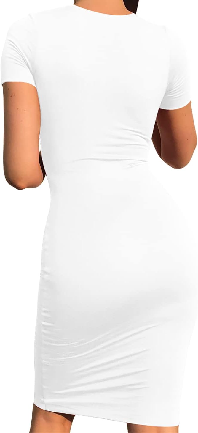 GOBLES Women's Short Sleeve Casual Bodycon Midi Elegant Cocktail Party Dress