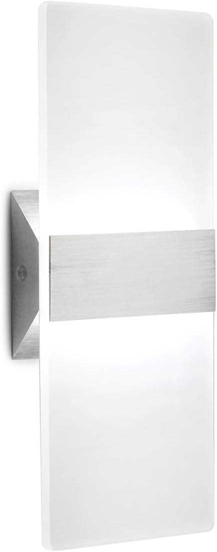 ChangM Modern LED Lámpara de Pared de Acrílico LED 12W Blanco Frío 6000K Lámpara de Pared para Dormitorio, Pasillo, Escaleras, Baño, Iluminación Interior, Lámparas de Decoración para Habitación, No Ajustable, Sin Enchufe (1 Unidad)