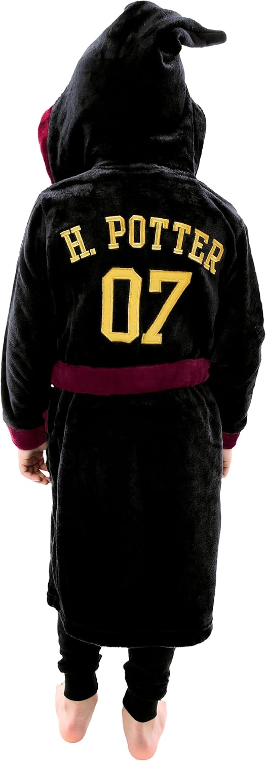 Get ready to transport your little one into the enchanting wizarding world, dressed just like their favourite Hogwarts student with this magical Harry Potter robe. Made from the softest, velvety material, this black and burgundy boys robe proudly displays the Gryffindor emblem on the chest. But there's more magic to discover! It features super handy pockets with the HP logo on one of them, a tie belt, a golden embroidered "H Potter 07" at the back, and don't forget the pointed hood for that extra touch of wizarding charm. It’s not just a Harry Potter wizard robe it's the perfect Harry Potter gifts for your young wizard or witch, guaranteed to make their day! Get your little wizard ready for a world of magical adventures in style! Shop Now!