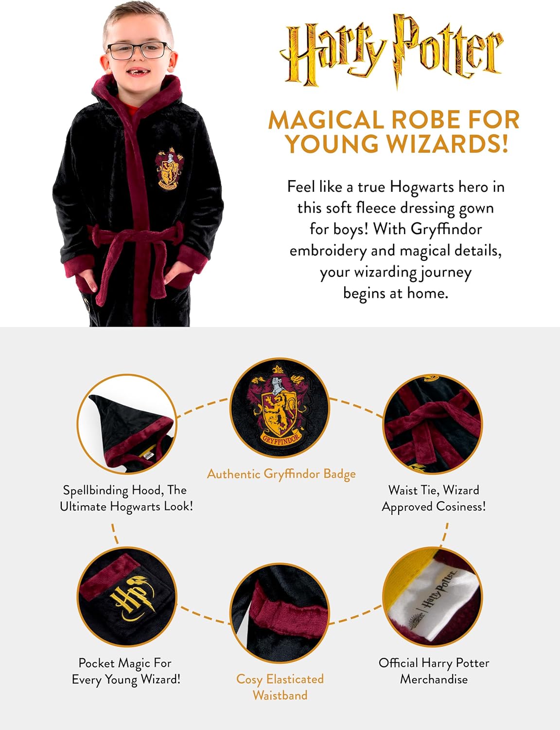 Harry Potter Robe | Gryffindor Kids Bathrobes | Hogwarts Fleece Robe