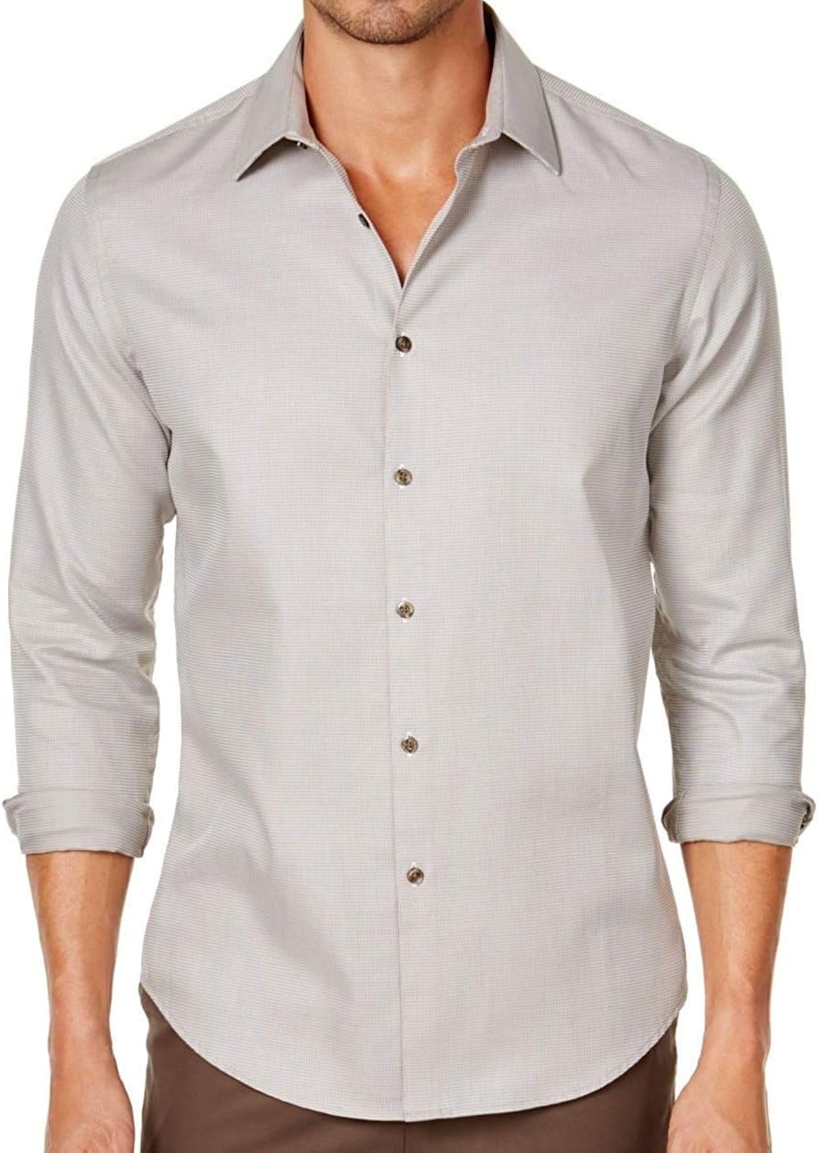 Tasso Elba Mens Dobby Pattern Point Collar Dress Shirt Taupe M
