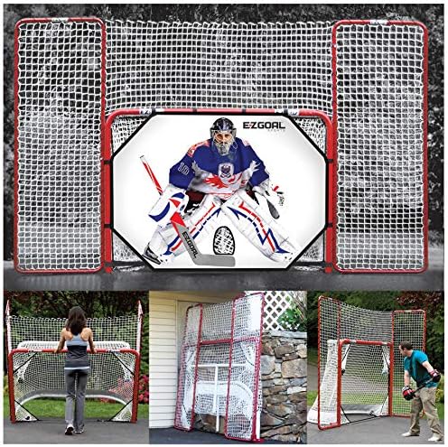 Practicing on goal is essential, but it's hard to picture what it's like with a goalie blocking your way and it's a huge waste of time to chase down pucks constantly. Solve all your practice problems with the EZgoal 2 in. Folding Steel Hockey Goal with Backstop, Shooter Tutor, & Targets (Lifetime On Goal Net). This unique practice goal features a regulation full-size 4- x 6-foot hockey goal made with 2-inch diameter steel tubing. It's surrounded by a removable 10'- x 6' backstop with the same puck-proof net as the goal, so your errant shots stay nearby. You'll also get our new Shooter Tutor, a removable goal cover that simulates a skilled goalie and leaves only the four corners and a small center target available. It even comes with a set of wheels to help you move the goal to the right location. EZgoal is the name you can rely on to perfect your game on the court, the pitch, or the ice! This Connecticut-based company makes a variety of sports accessories, everything from hockey to baseball. An all-star is born with every new product sold, and every product sold is a built to last. Each piece is made from the most durable materials and designed for optimal convenience. To make a good player into a great player, there's no better brand than EZgoal. Manufacturer's 1-year included.