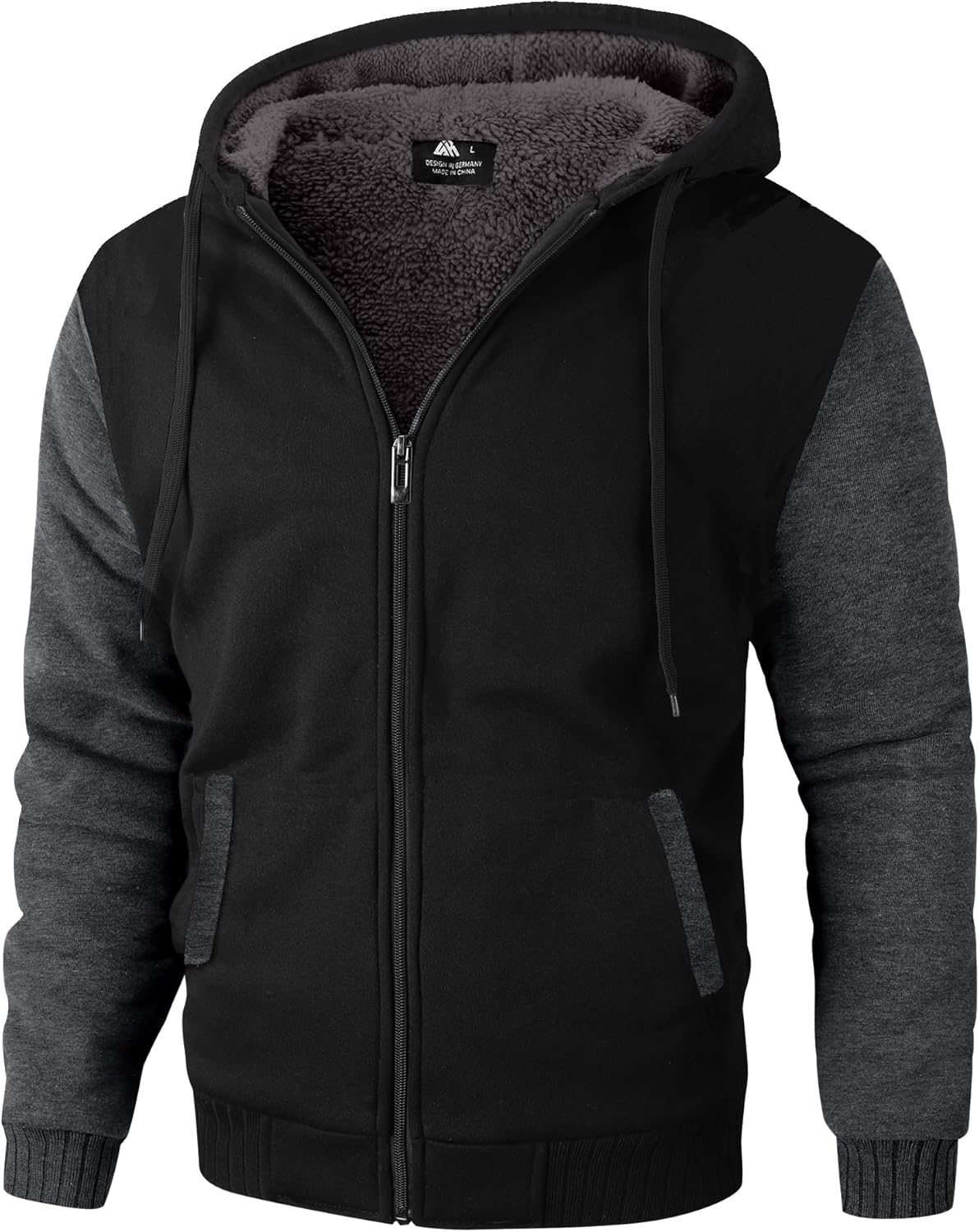 ZITY Men's Zip Up Hoodie Heavyweight Winter Sweatshirt Fleece Sherpa Lined Warm Jacket