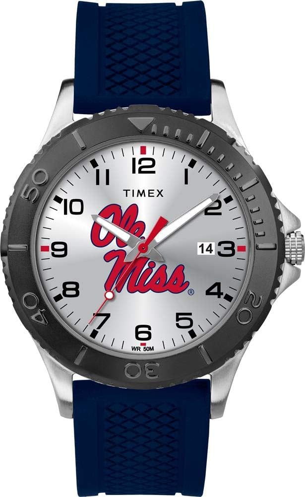 Reloj Timex Tribute para hombre Collegiate Gamer de 42 mm – Ole Miss Rebels con correa de silicona azul marino