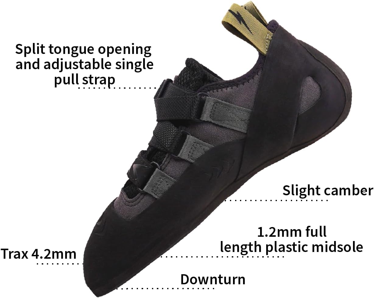 Las piezas y el diseño diseñados anatómicamente proporcionan al Kronos un ajuste cómodo sin sacrificar el rendimiento. Utiliza una sola hebilla más un cierre de correa de cinch-pull para mayor comodidad y un ajuste personalizable para el escalador moderno, lo que lo convierte en uno de los mejores zapatos técnicos de duración plana del mercado.