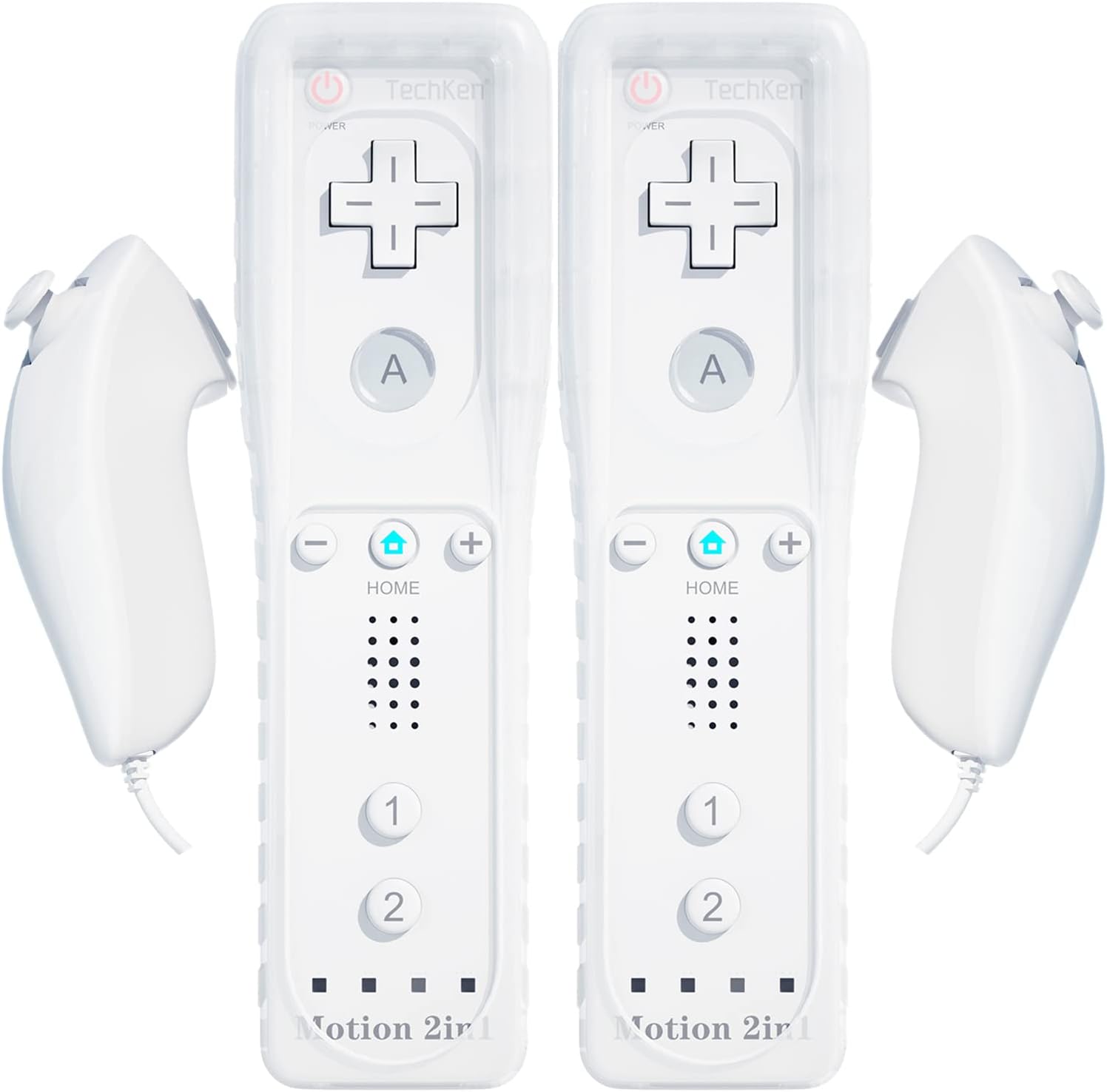 2 Pack Wii Remote with Wii Motion Plus Inside | Shock Wii Nunchuk Controller | Compatible Nintendo Wii, Wii U