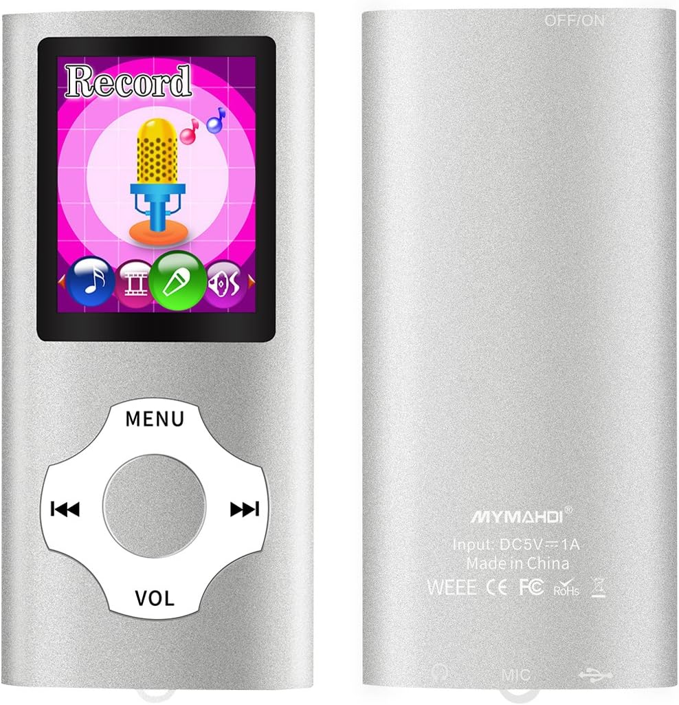 Reproductor portátil Mymahdi MP3/MP4, pantalla LCD de 1.8 pulgadas, soporte máximo de 64GB, plateado
