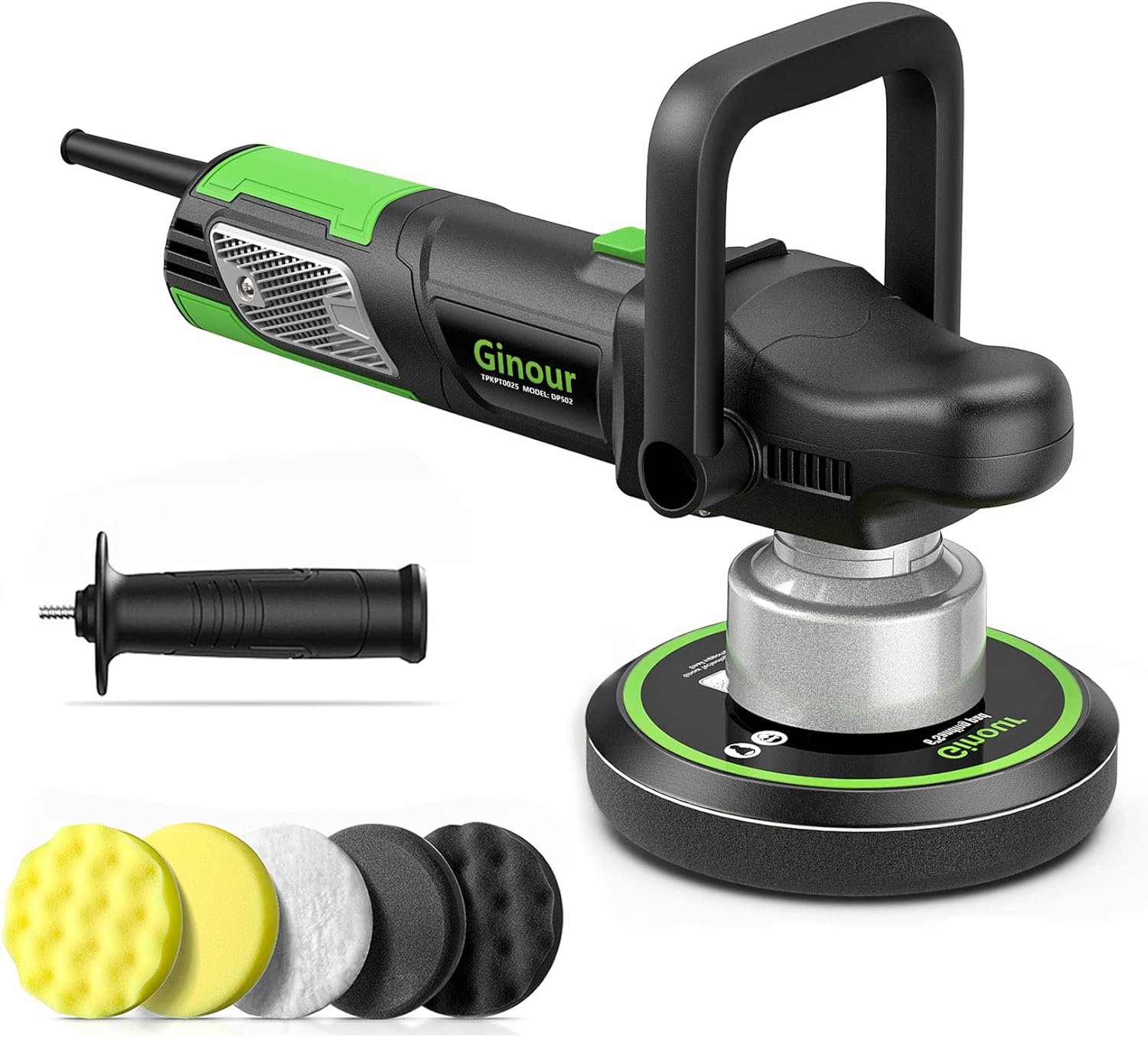 Ginour Buffer Polisher, 6 inch Dual Action Buffer for Car Detailing, Variable Speed Random Orbital Car Buffer with 2 Handles, 5 Buffer Polisher Pads (Number of Items 8)