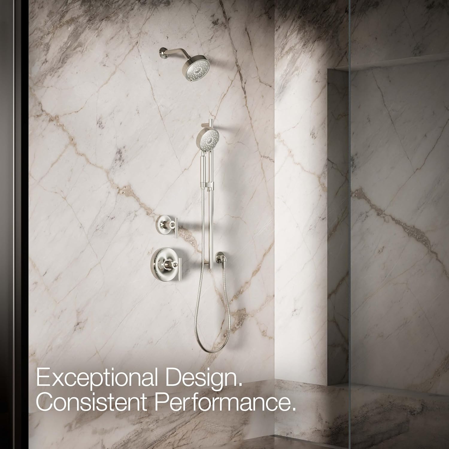 Additional Hardware and Equipment Needed: Detachable shower head coordinates with accessories from the Purist, Stillness and Composed collections; complement your shower faucet set with a K-8593 or K-9514 Shower Hose, a K-98360 or K-98359 Smooth Shower Hose, or a K-45981 or K-45982 Ribbon Hose