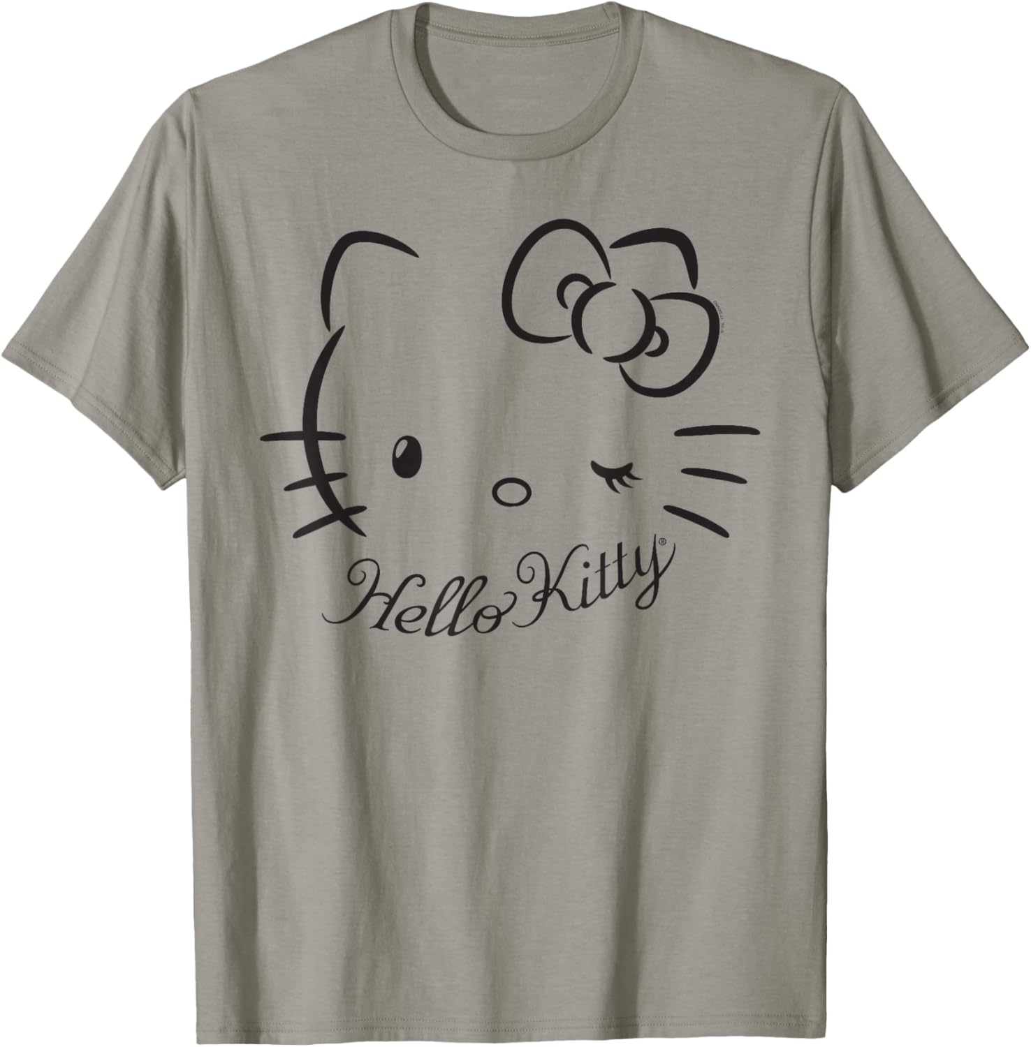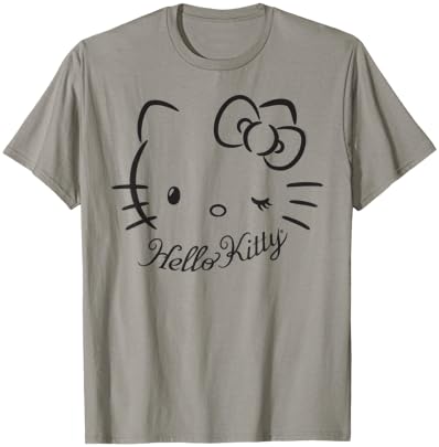 SANRIO Hello Kitty Winking Tee T-Shirt, Women's Casual Classic Cartoon Letter Print T-Shirt, Grey, Small