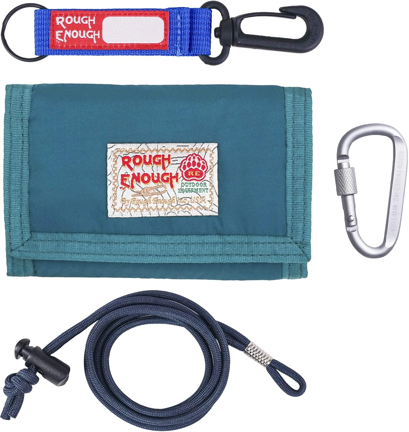 Material and Size: Rough Enough wallet for kids boys teens is well made by soft lightweight durable rip stop nylon material, strong magic tape closure, smooth Japanese YKK zipper closure, swivel clasps, personalized name tag, adjustable neck lanyard strap, keychain and carabiner clip (not for climbing). Kids wallet size: 5 x 3.4 inch