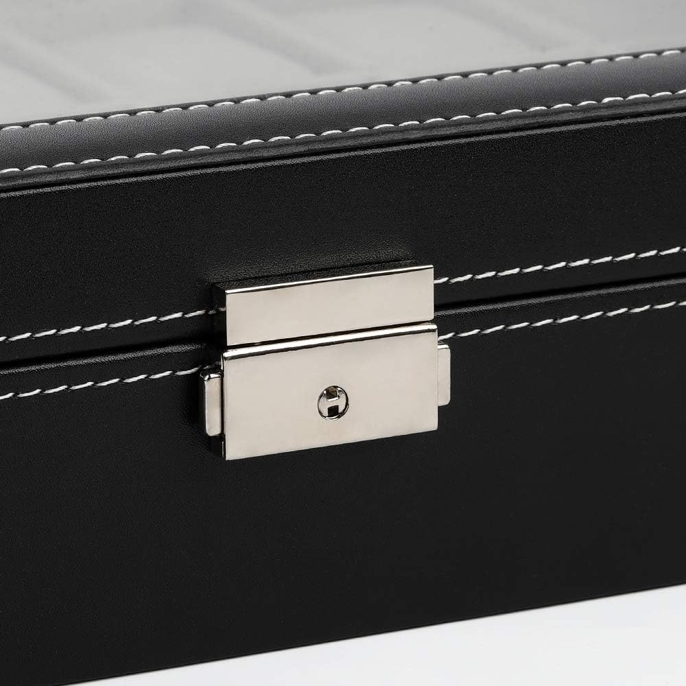 Large Acrylic Lid: Your watches and jewelry will be protected well from dust and scratching for the transparent acrylic cover. You will own a broad vision and can find the most favorable treasure in seconds in your watch organizer box.
