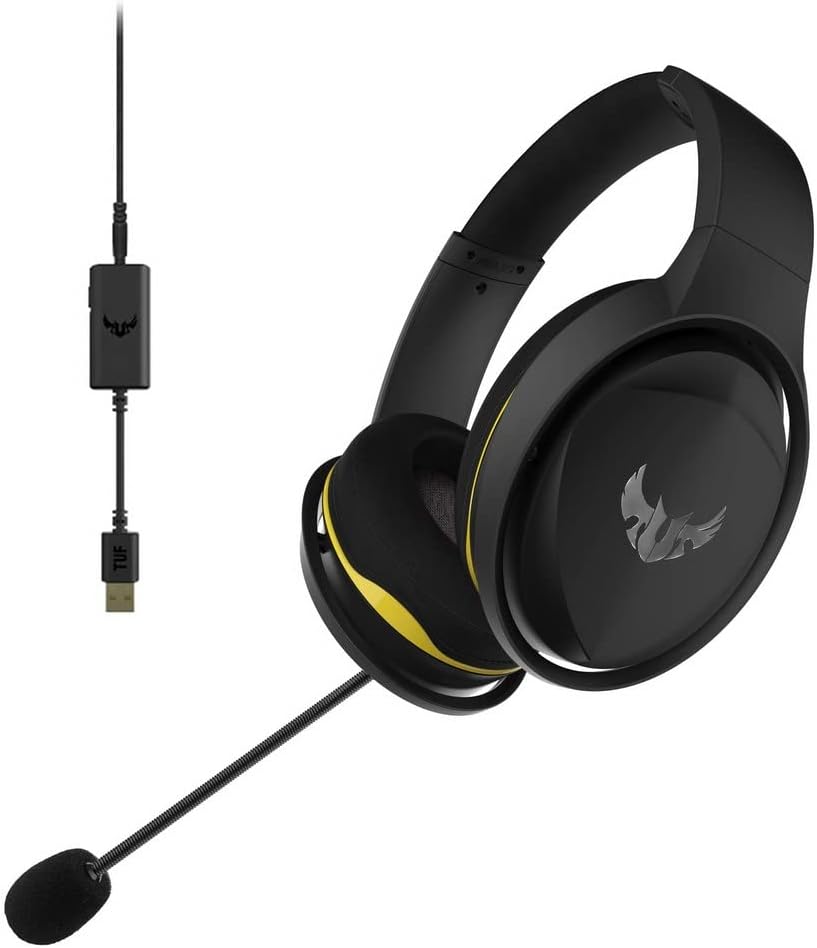 From the manufacturer Features Incredibly Deep Bass, Clearer Details TUF Gaming H5 has inherited ASUS gaming headset's most iconic audio features, the exclusive airtight chamber and the ASUS Essence drivers, which provide a clearer sound with strong bass, letting you immerse yourselves in a natural-sounding, immersive gaming experience. Immerse in Game Instantly No software needed or PC performance affected, TUF Gaming H5 comes with onboard 7. 1 virtual surround sound, which is easily enabled with just a single button on the dongle! Tough, Long-lasting Durability To withstand the rigors of intense gaming, TUF Gaming H5's headband's made of durable, stainless steel which is tough and durable for a long period of use. Adjustable Ear Cup and Light Weight Design With ear cups that are adjustable, TUF Gaming H5 fits all kinds of head shape and allow gamers to game without any fatigue in a long gaming session. Lightweight design also helps lessen the pressure the headset gives to the gamers and is very perfect for travel as well. Dual microphone TUF Gaming H5 is thoughtfully designed with two microphones: a detachable boom mic that provides clear communication when gaming, and an in-line microphone that is convenient for phone calls and other everyday tasks. Moreover, in-line adjustable volume and mic mute are handy for your use. Armoury II Armoury II is a software that offers extensive controls and an intuitive UI, so you can easily tune TUF Gaming H5 to play your way. From equalization (EQ) to 7. 1-speaker level-balancing, even create and apply audio profiles for different game types and scenarios. Style: TUF Headset H5 Arm your battle stations with the TUF GAMING H5 Discord certified headset with onboard 7. 1 virtual Surround Sound, Dual microphones and 50mm ASUS essence drivers. Connect via USB or 3. 5mm jack to your favorite gaming platforms. The stainless steel headband and cloth ear cups provide comfort during long gaming sessions.