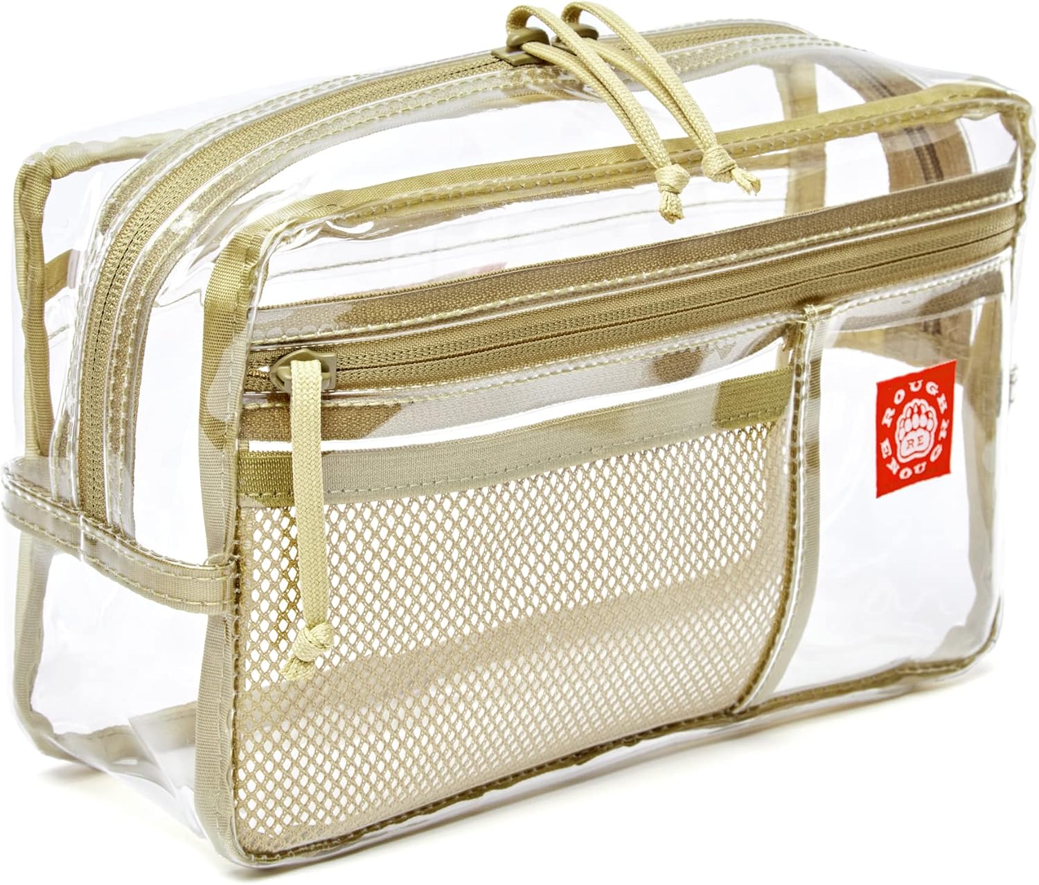 Reliable & Water-Resistant: Made from quality stiff PVC, matching with smooth Japanese YKK zippers and sturdy stitching, Rough Enough clear toiletry bag is elegant and built to last. It's water-resistant and can withstand daily wear and tear
