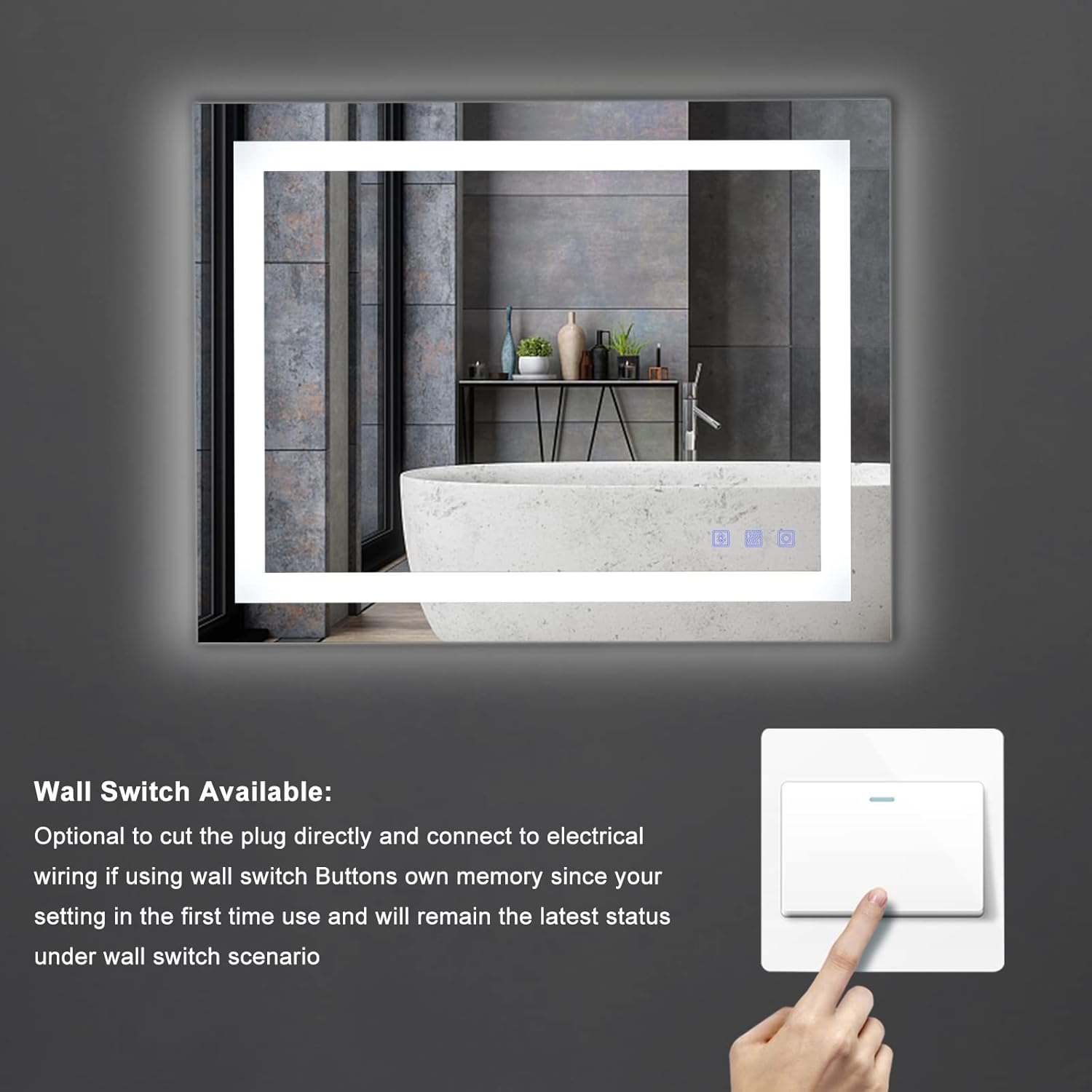 ★2-Way Installation★:You can hang it vertically or horizontally, our mirror comes with UL listed plug,it can also be cut off to hardwired to a switch on the wall.Please note:You have to turn on both the wall switch and then the mirror if the light switch is turned off at the wall.