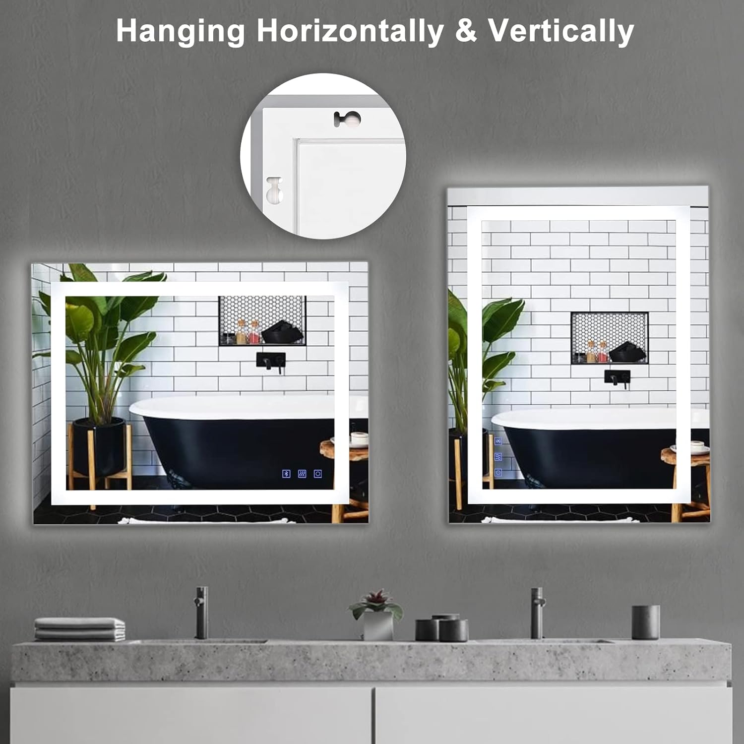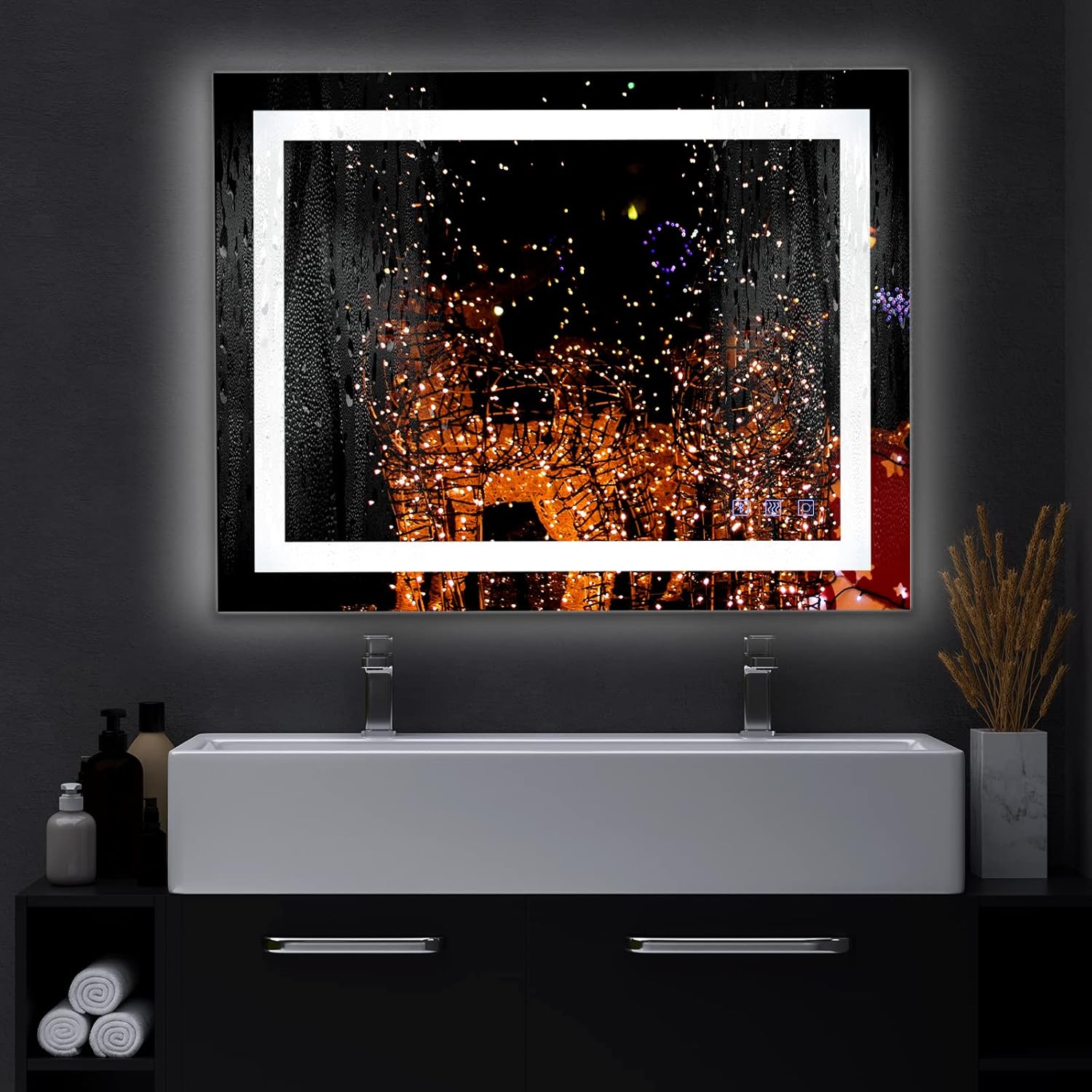 Bonnlo 36"×28" Dimmable LED Illuminated Bathroom Mirror with Bluetooth Speaker, Anti-Fog Wall Mounted Bathroom Vanity Mirror,Smart Vanity Mirror with Memory Touch Button| Hangs Vertically/Horizontally