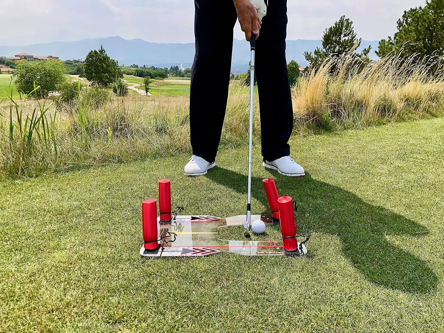 Entrenador de Camino de Swing para Dominar Draws y Fades: Las varillas rojas removibles guían tu palo a través del plano ideal de swing de golf, ayudándote a golpear un draw o fade consistente mientras mejoras el control de tu camino de swing.