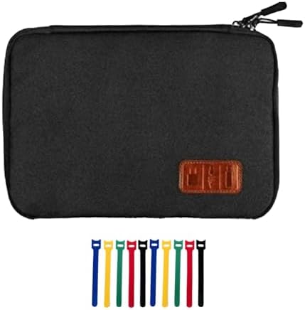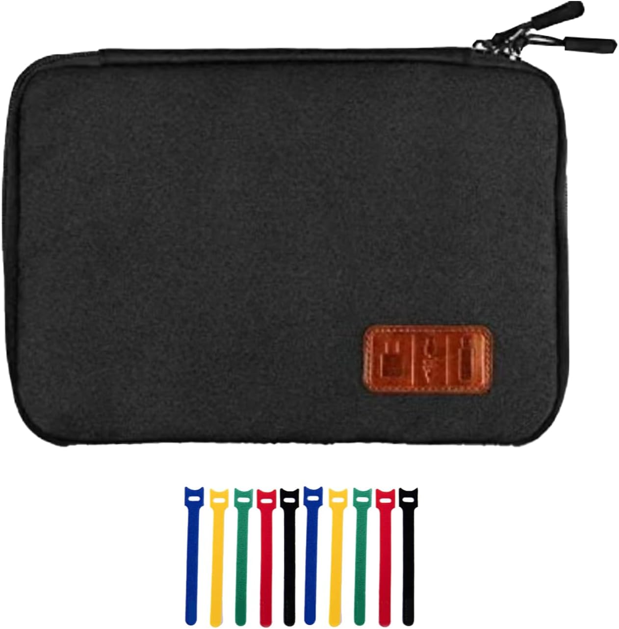 Bolsa Organizadora de Cables de Viaje de Capa Doble Impermeable Portatil para Accesorios Electronicos Organizador para Cable USB, Cordón, Cargador de Teléfono, Auriculares, Cable SD con 10 x Sujetacables (Negro)