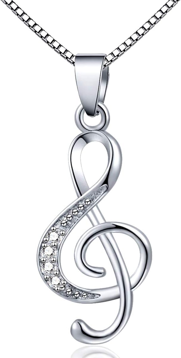 Collar con colgante DXZNBEST Music Note de plata de ley 925 con circonitas cúbicas para mujeres y niñas, día de la madre, día de San Valentín, Navidad, joyería, cadena de regalo, 18 pulgadas