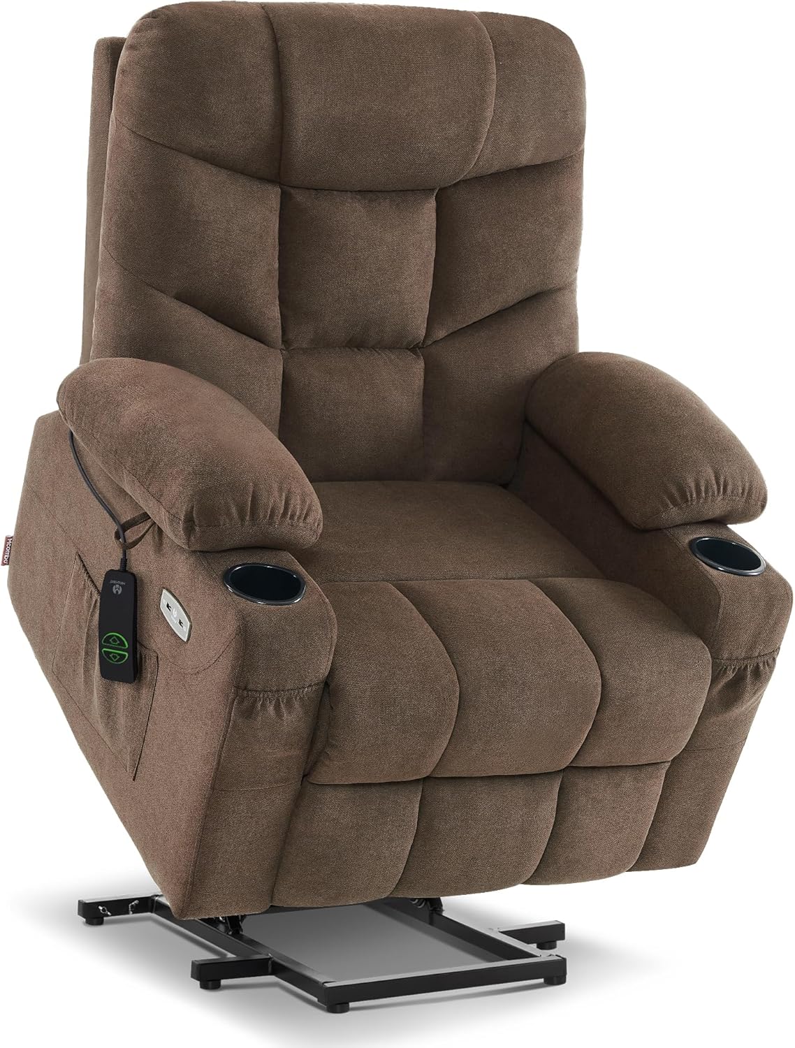 MCombo Power Lift Recliner Chair with Extended Footrest for Elderly People, Fabric 7287 (Brown, Medium)