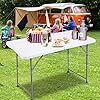 FORUP Folding Utility Table, 4ft Fold-in-Half Portable Plastic Picnic Party Dining Camp Table