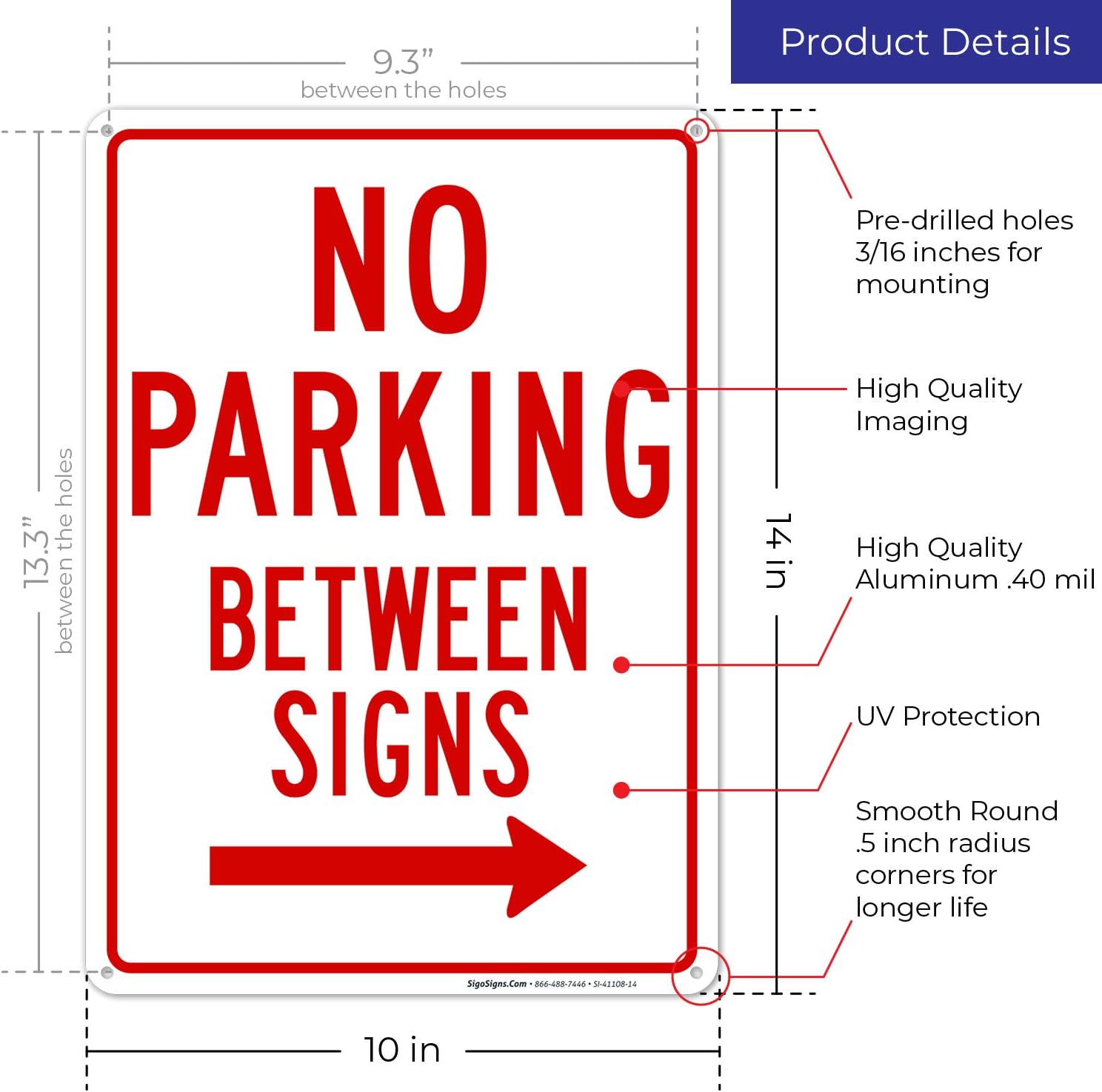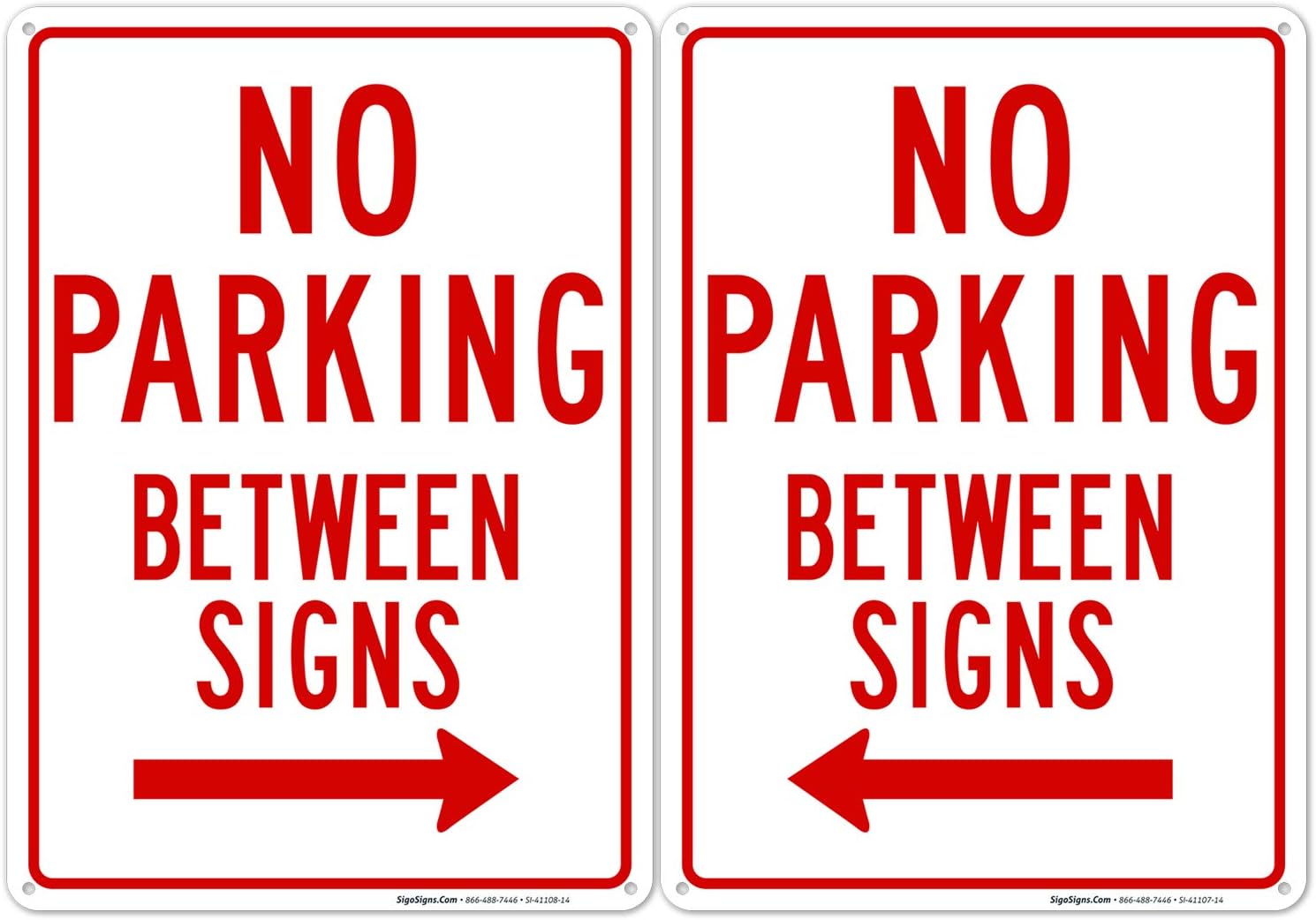 (2 Signs) No Parking Between Signs with Right and Left Arrow Sign, 10X14 Rust Free Aluminum, Weather/Fade Resistant, Easy Mounting, Indoor/Outdoor Use, Made in USA