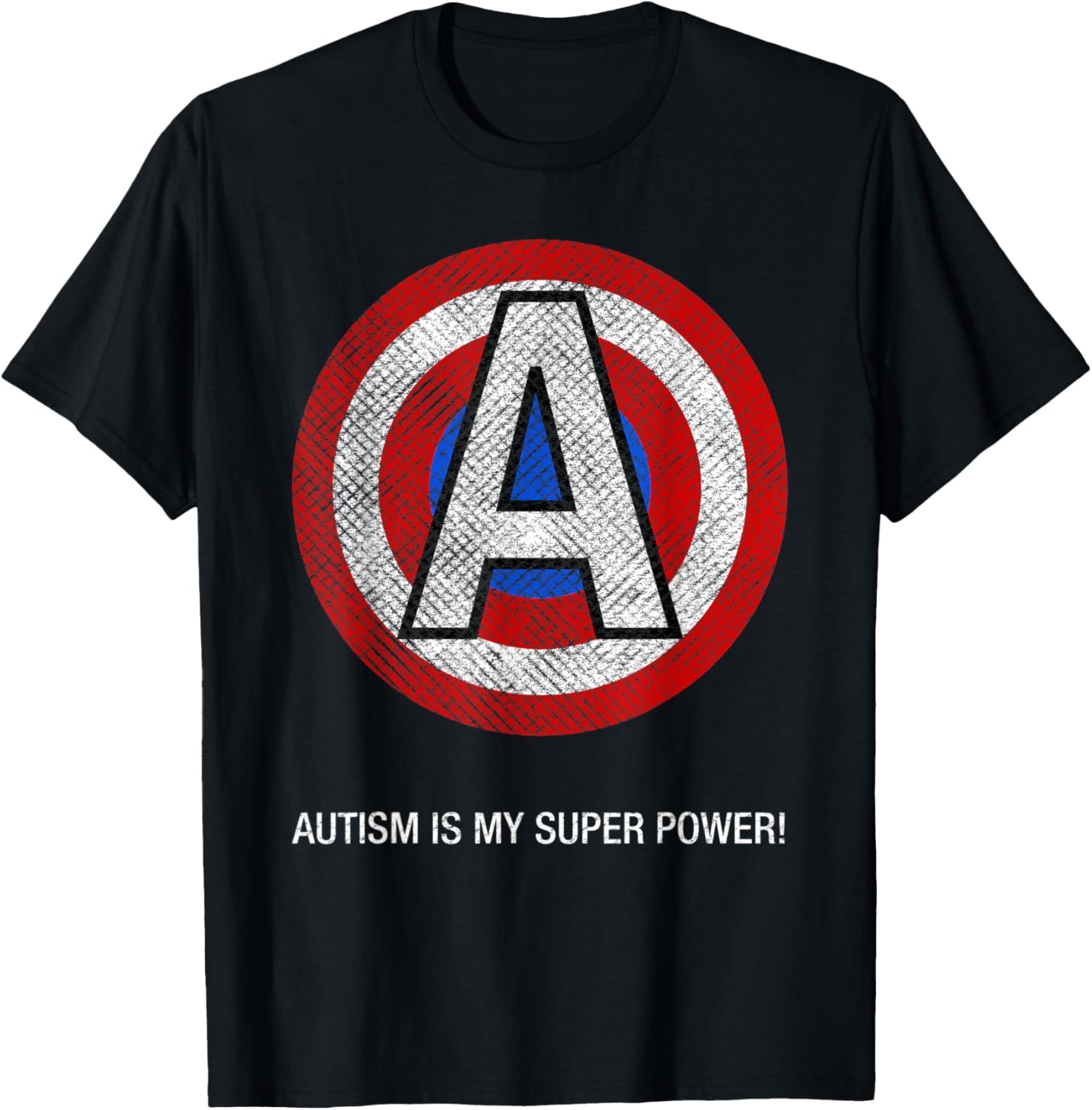 Autism super hero shirt with the words Autism Is My Super Power. A great self esteem and confidence booster for the autistic.