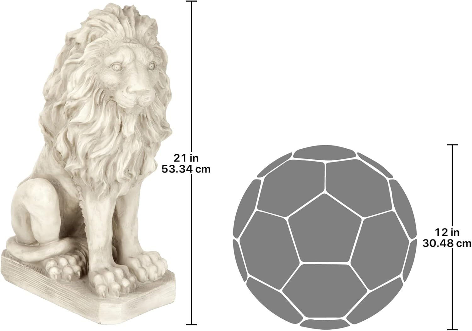 Nuestra estatua de león mirando a la derecha mide 13"Wx10"Dx21"H y pesa 19 libras. ideal en una terraza, prado amplio o junto a una entrada principal