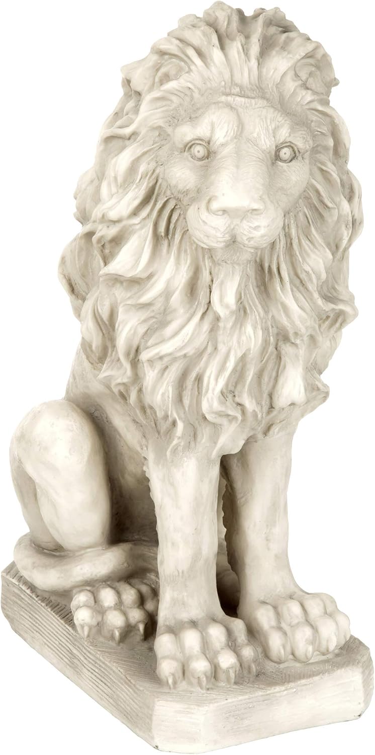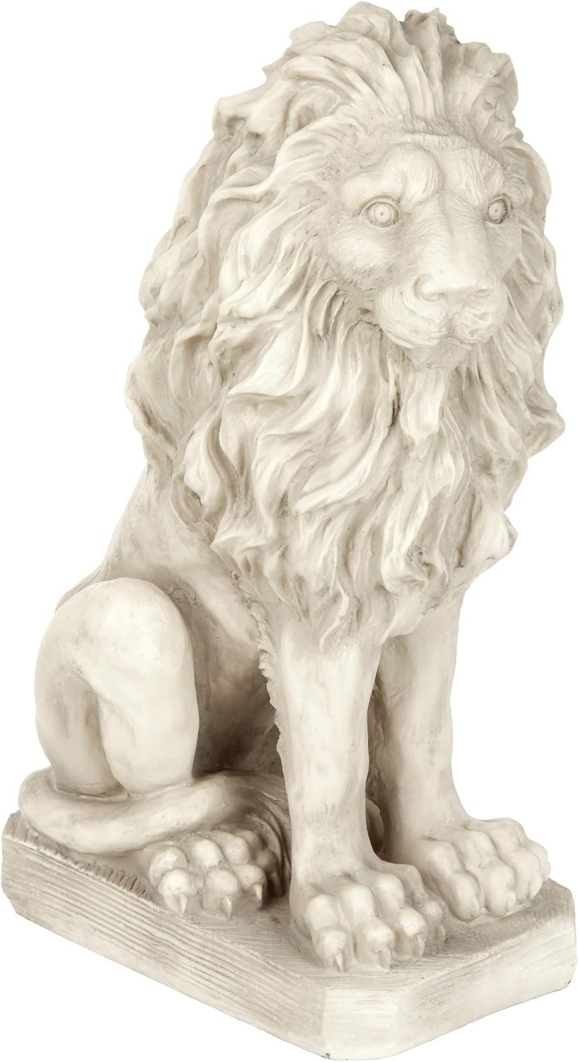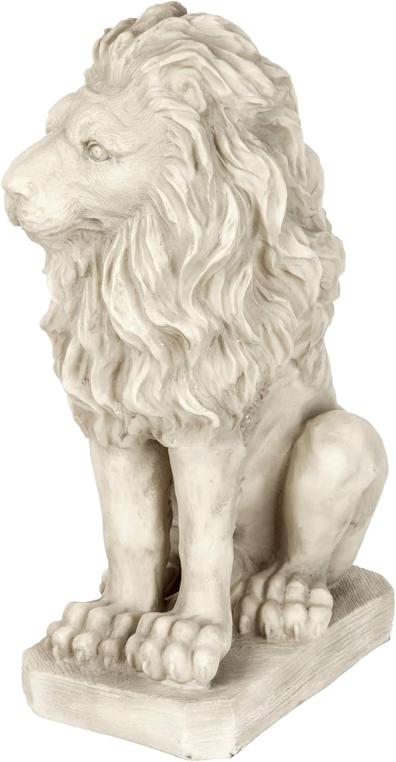 Decoración de alta calidad - Fundido a mano usando piedra triturada real unida con resina duradera de diseñador, nuestra estatua de león sentinela presenta un acabado de piedra falsa intemperizado y resistente a los rayos UV